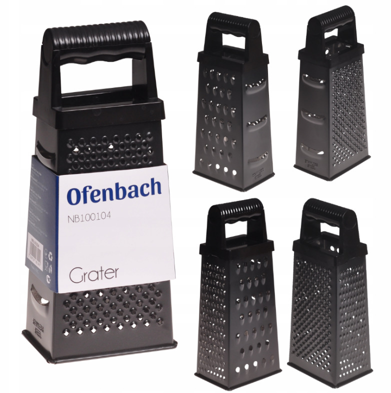 4-pusēja nerūsējošā tērauda rīve, Ofenbach, 100104. Izgatavota no nerūsējošā tērauda ar plastmasas rokturi. Tai ir 4 veidu asmeņi. Viegli un ērti lietojama. Praktiska un noderīga katrā mājsaimniecībā. Ieteicams mazgāt ar rokām.