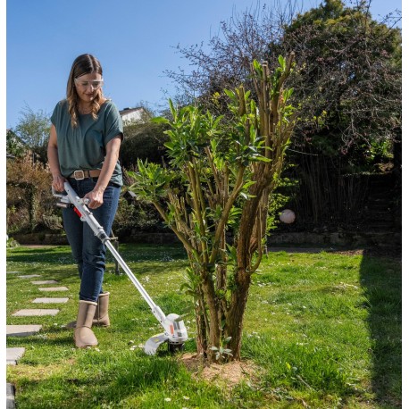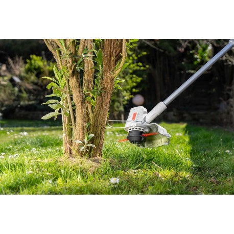 IKRA IART 2025 ir praktisks 2in1 akumulatora trimmeris, kas paredzēts glītām zāliena apmalēm un vietām, kur zāles pļāvējs netiek klāt. Komplektā ir divi griešanas risinājumi: spole ar auklu precīzai apmalu un zāles piegriešanai, un neilona asmeņi, kas ļauj vieglāk tikt galā ar stingrākiem augiem un blīvāku zāli. Ērtībai trimmerim ir 180° pagriežama galva vertikālai apmalei, teleskopiska augstuma regulēšana, automātiska auklas padeve, nolokāms augu aizsargs un integrēta asmeņu uzglabāšanas vieta.