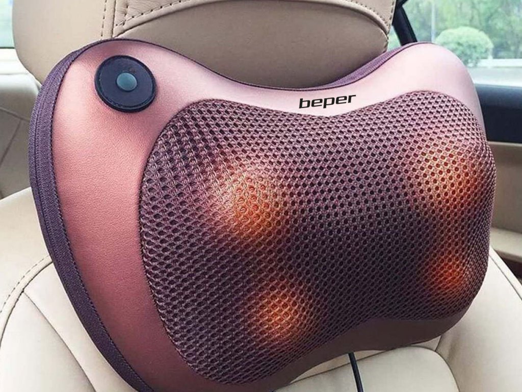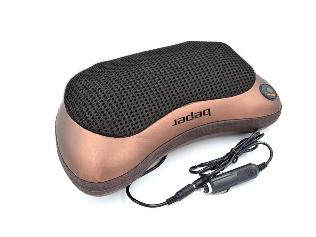 Divējāda lietojuma masāžas spilvens: Māja un automašīna, ar adapteri komplektā. Aprīkots ar 4 masāžas mezgliem ar mainīgu griešanos pulksteņrādītāja virzienā un pretēji pulksteņrādītāja virzienam (regulējams ar ieslēgšanas/izslēgšanas pogu), tas veicina asinsriti un muskuļu relaksāciju. Automātiska izslēgšanās pēc 15 minūtēm.