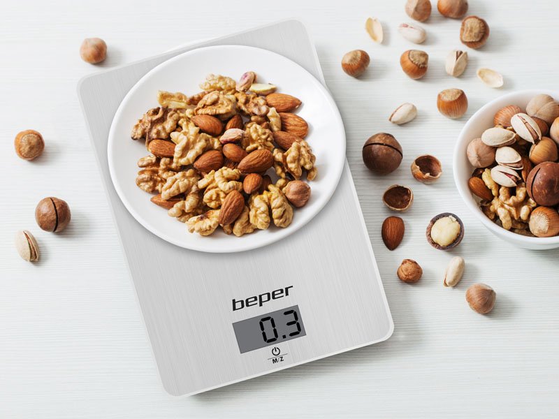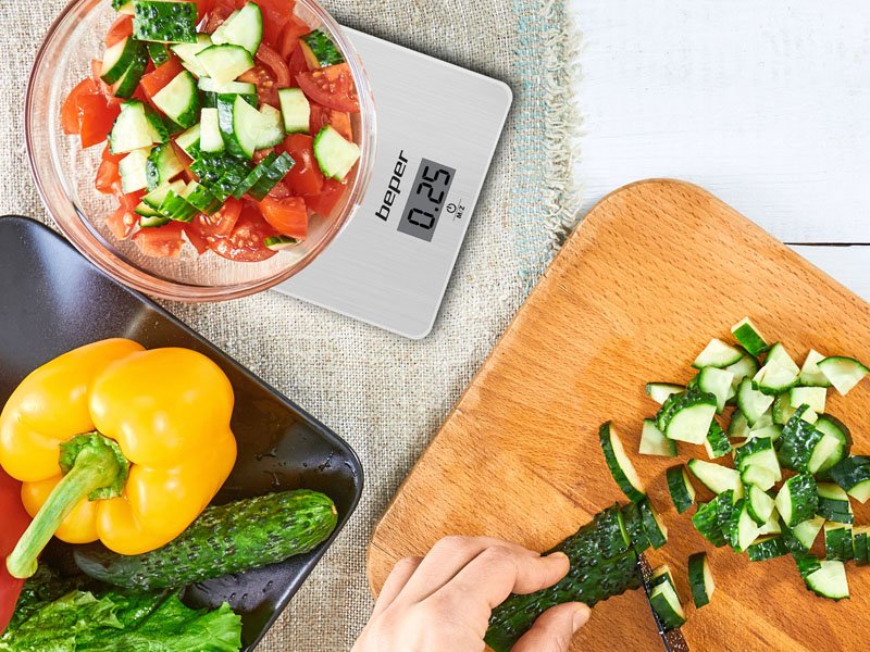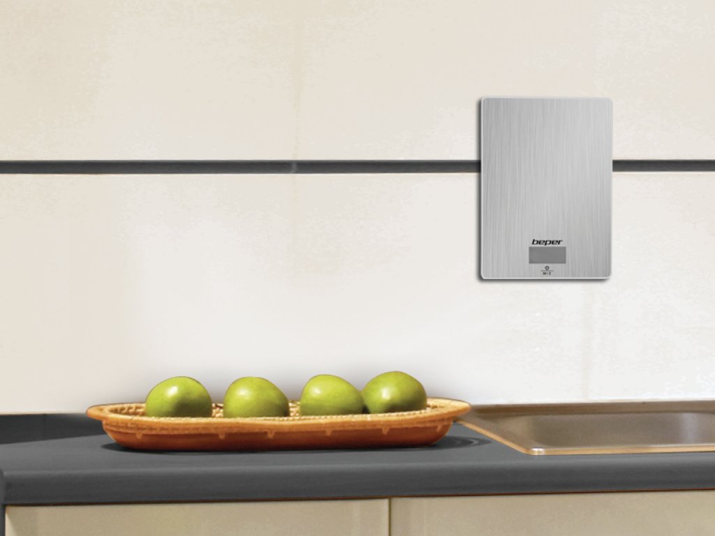 Vietu taupošie digitālie virtuves svari ar tērauda plāksni ar elegantu pārklājumu un taras funkciju, kas ļauj nosvērt vairākus pārtikas produktus pēc kārtas. Piekarināmi, pateicoties aizmugurē esošajam āķim. Skārientaustiņi ērtai lietošanai un LCD displejs ērtai nolasīšanai. Iespēja nosvērt gan cieto pārtiku, gan šķidrumu daudzumu, pateicoties augstas precizitātes sensoram no 1g līdz 5kg. Automātiska izslēgšanās pēc dažu sekunžu dīkstāves. Var izvēlēties gramus, mārciņas vai mililitrus. Baterija iekļauta komplektā.