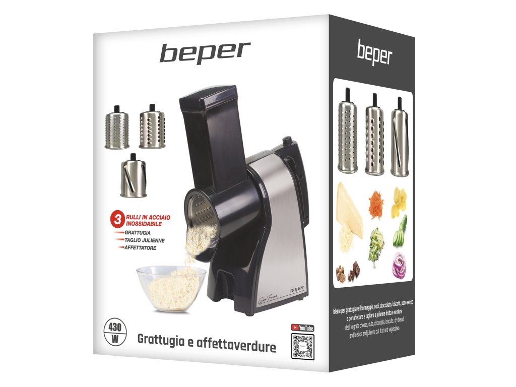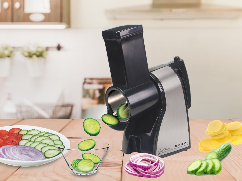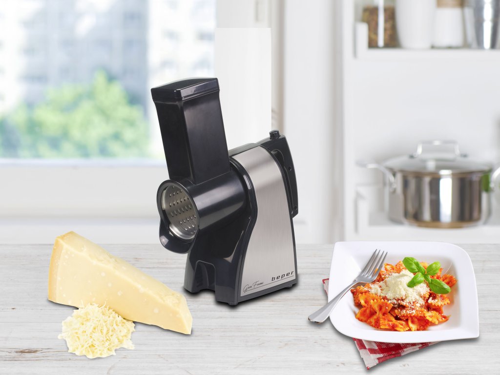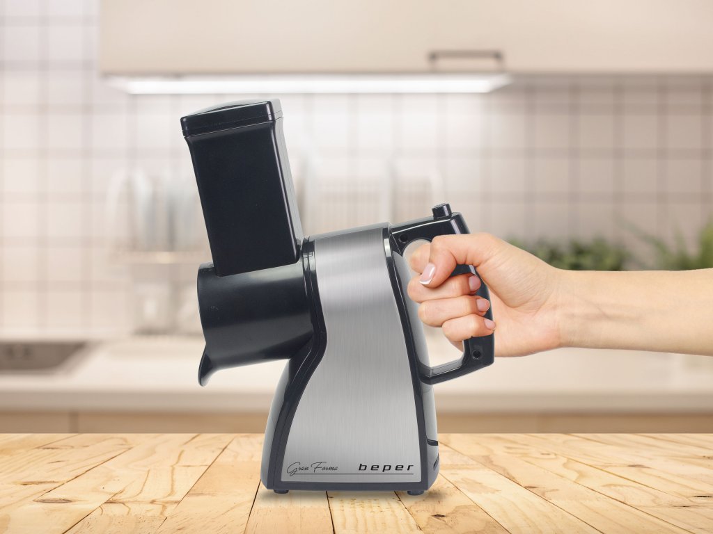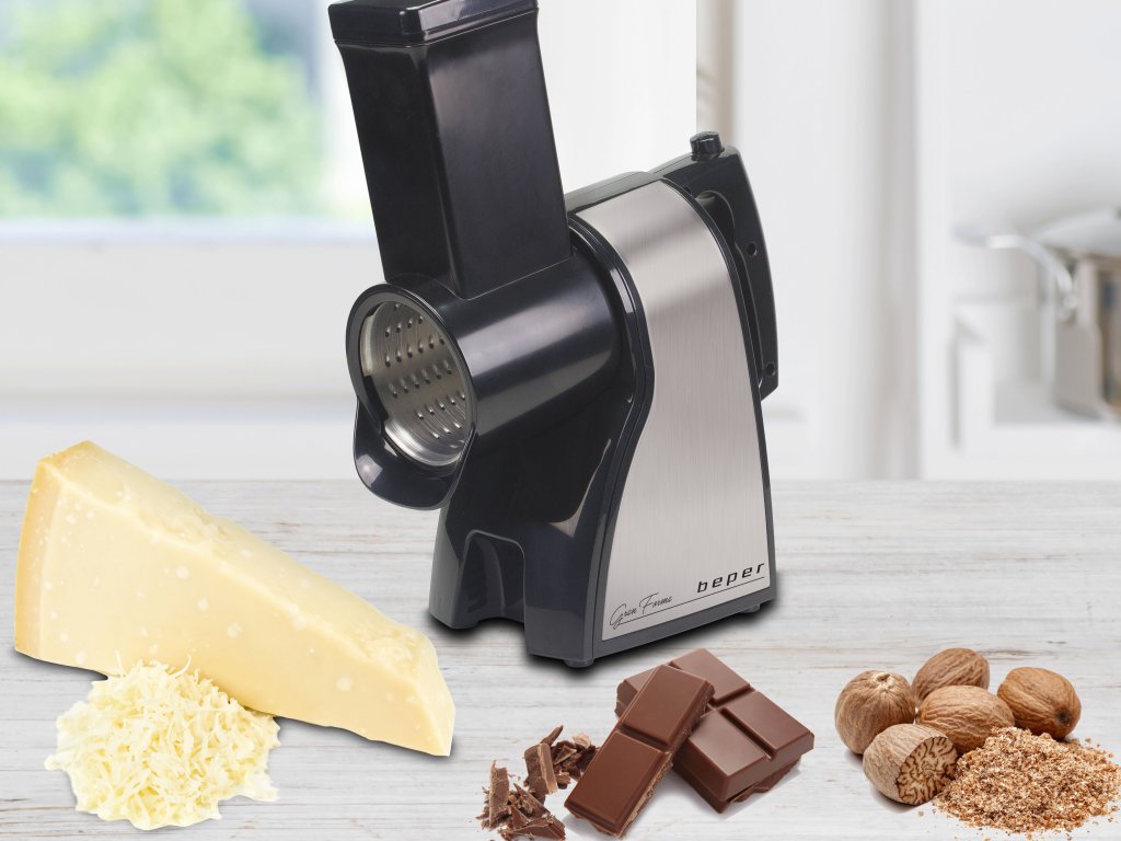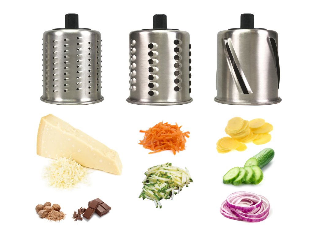 Praktiska griešanas mašīna ar tērauda korpusu un ABS un nerūsējošā tērauda rullīšiem. Aprīkota ar 3 viegli maināmiem rullīšiem dažādiem griešanas veidiem: šķēles, žuljēns un smalka rīve. Ergonomisks rokturis drošam satvērienam un liels caurums pārtikas ievadīšanai. Ideāli piemērota siera, riekstu, cepumu, maizes rīvēšanai un augļu un dārzeņu griešanai. Viegli izjaukt un tīrīt.
