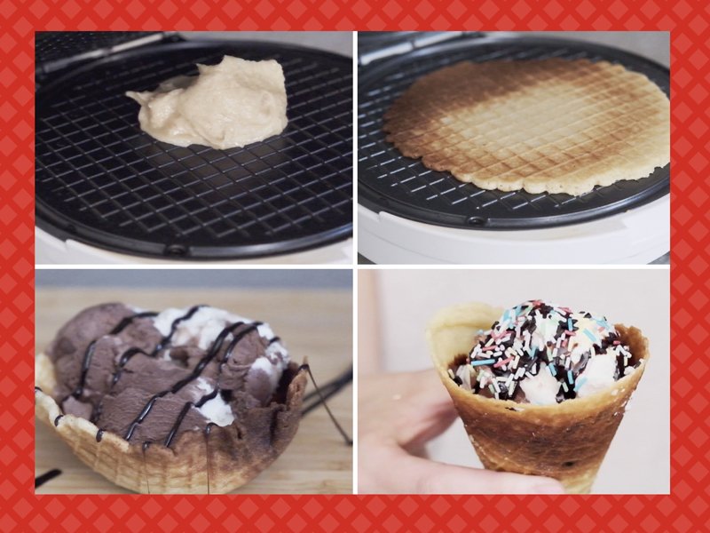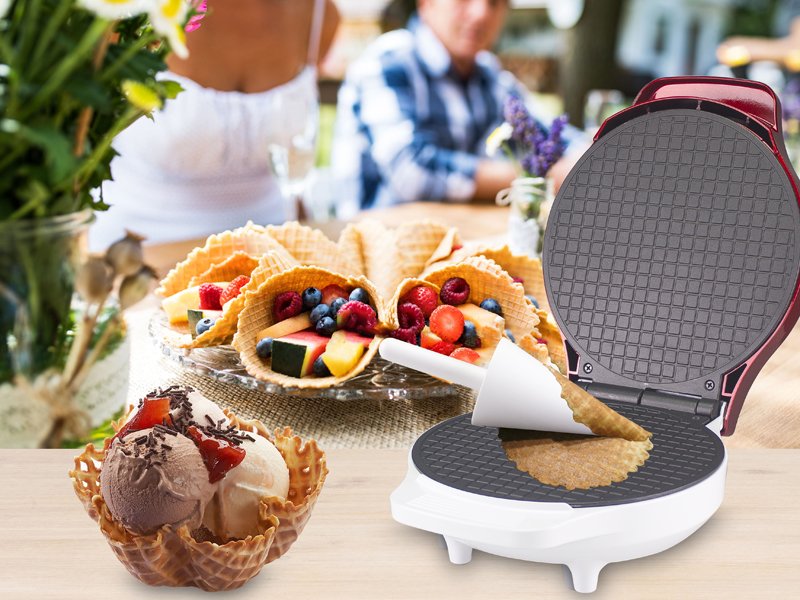 Ideāli piemērota kraukšķīgu vafeļu, saldējuma krūzīšu konusu vai groziņu, sāļo uzkodu, siera vafeļu, olu rullīšu pagatavošanai.