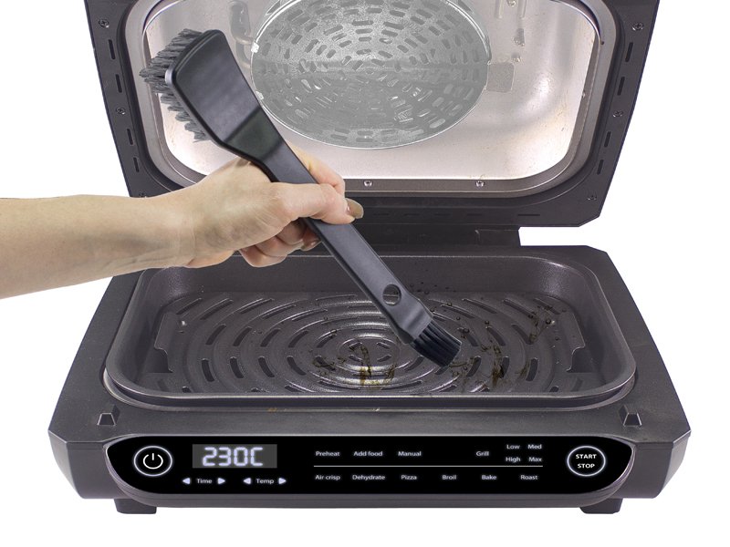 Vienkārša apkope: noņemams pretšļakatu režģis; nepiedegoša panna un režģis; komplektā iekļauta dubultā tīrīšanas birste.
