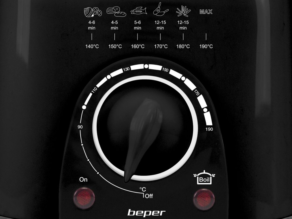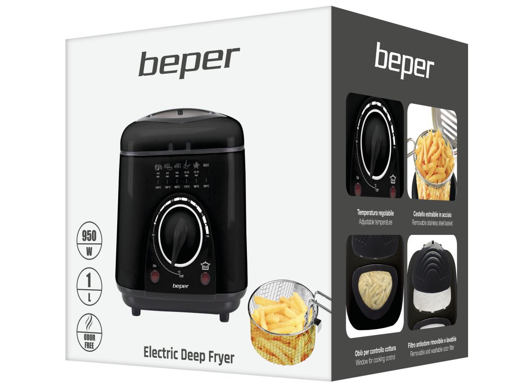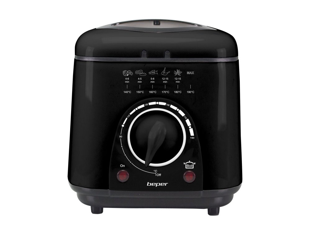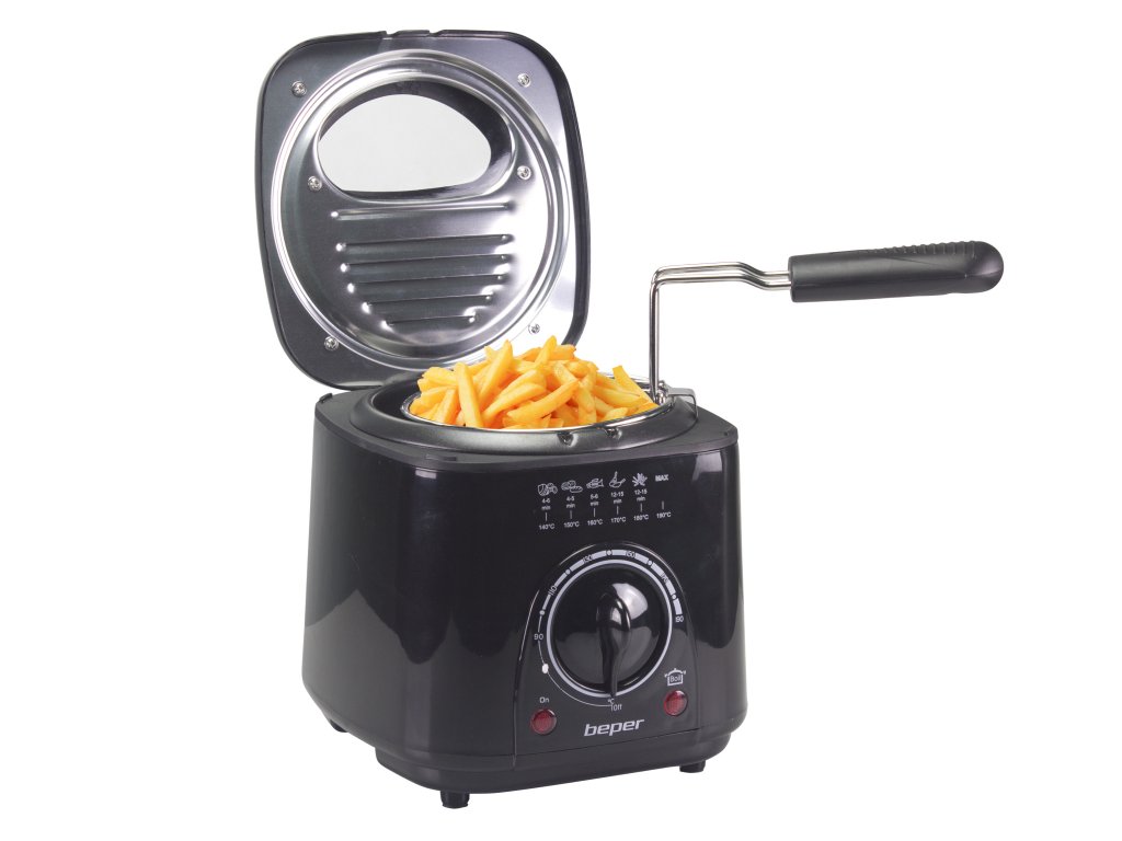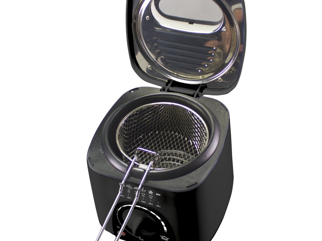 Kompakta elektriskā cepšanas ierīce ar abs ārējo korpusu un nelīpošu iekšējo trauku. Vāks ar iluminatoru un iebūvētu noņemamu un mazgājamu smakas filtru. 1L tilpuma nerūsējošā tērauda grozs. Darba apgaismojumu un temperatūru var regulēt ar praktisko pogu līdz 190 ° C. Ar stabilām neslīdošām kājām.