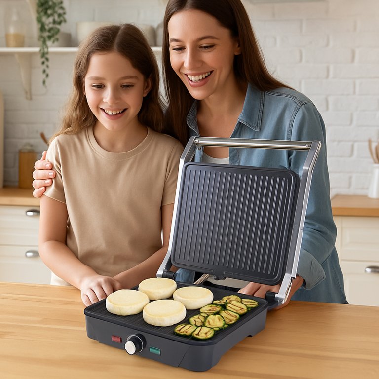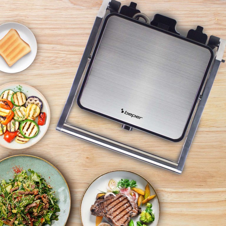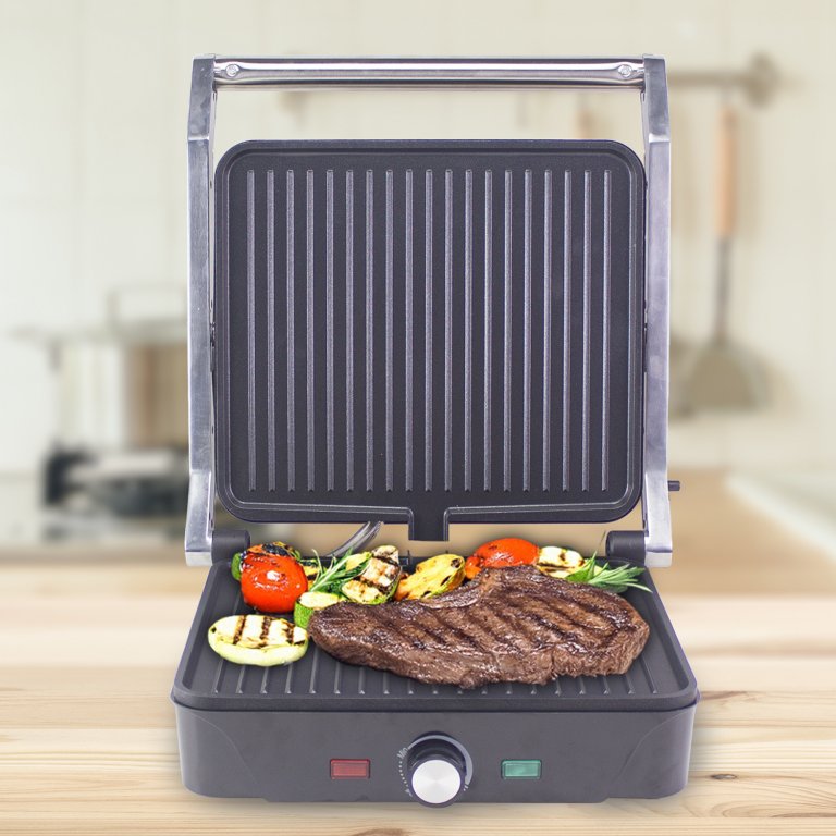 Daudzfunkcionāla 3-vienā steiku gatavošanas ierīce: steiki, sviestmaizes un bārbekjū.