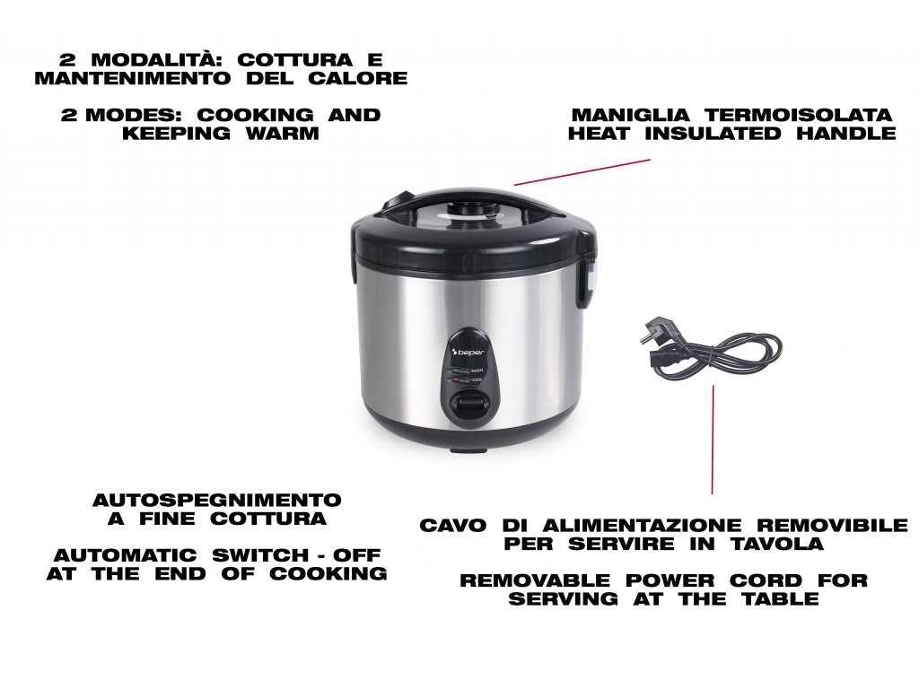 | Īpašas piezīmes | Noņemams strāvas vads, lai pasniegtu tieši uz galda; tērauda konstrukcija |
