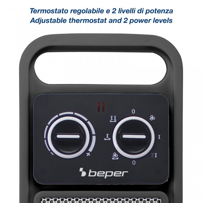 Aprīkots ar regulējamu termostatu, diviem jaudas līmeņiem un ventilācijas funkciju, tas nodrošina komfortu visu gadu.