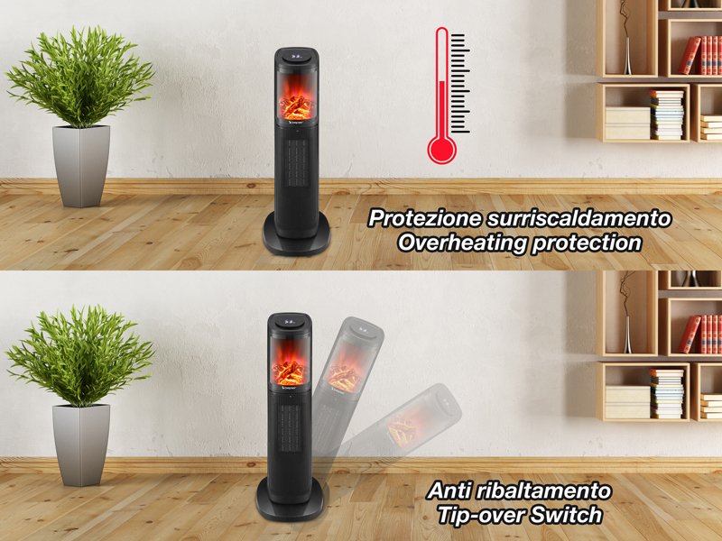Kompakts ventilatora sildītājs ar 2 kvarca sildelementiem vietas taupīšanai un ātrai uzsildīšanai. Ir pieejami 2 sildelementi un 2 jaudas režīmi. Salokāms, mazam izmēram. Ar praktisku rokturi ērtai transportēšanai. Automātiska izslēgšanās nejaušas nokrišanas vai pārkaršanas gadījumā.