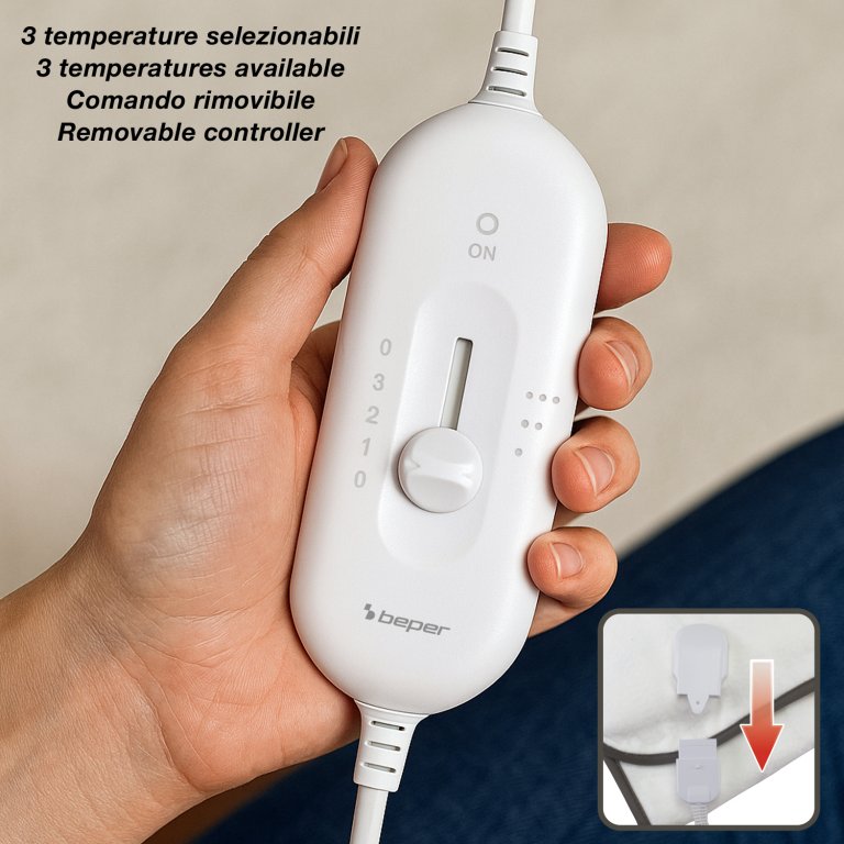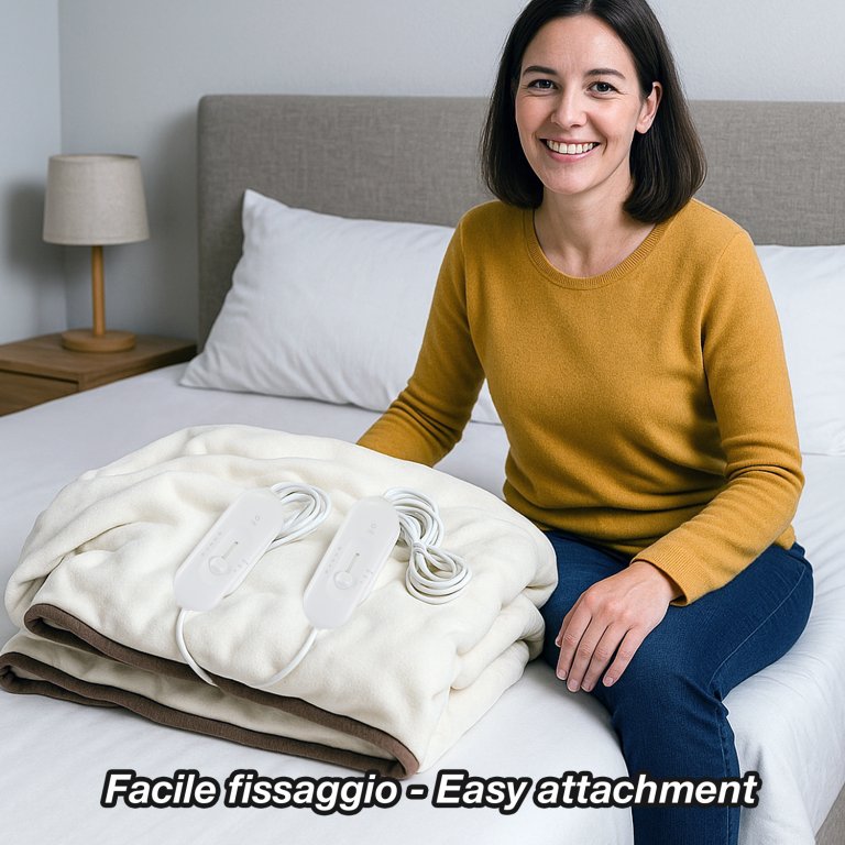 Mīksta poliestera elektriskā sega ar 2 temperatūras iestatījumiem divās dažādās zonās, pateicoties 2 komplektā iekļautajām tālvadības pultīm.