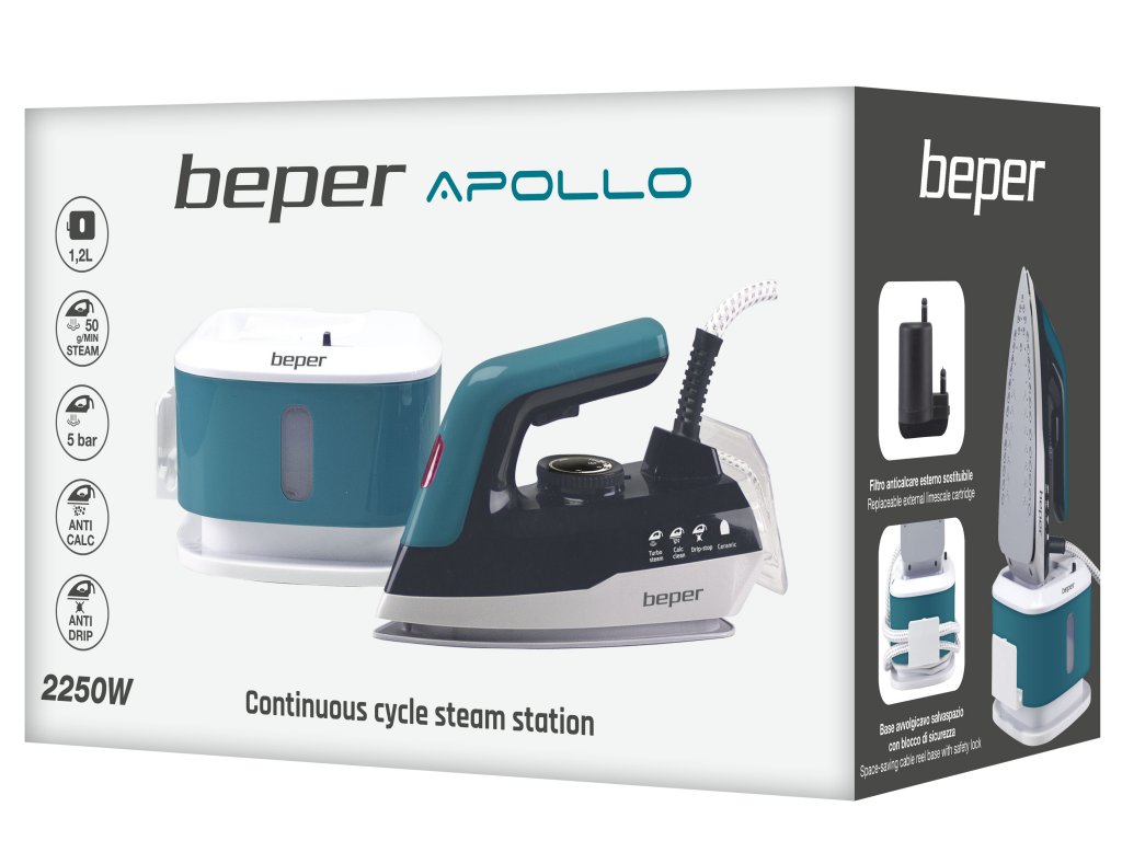 Nepārtraukta cikla tvaika stacija ar 1,2 litru tvertni, kuru var piepildīt jebkurā laikā, nepārtraucot gludināšanu. Īpaši slīdoša keramikas zole un regulējama temperatūra atbilstoši audumam. Nepārtraukta tvaika poga līdz 50 g/min. Komplektā ir ārēja, nomaināma pretkalcija kasetne. Vietu taupoša kabeļa ruļļa pamatne ar drošības bloķēšanas sistēmu, kas atvieglo produkta transportēšanu un uzglabāšanu.