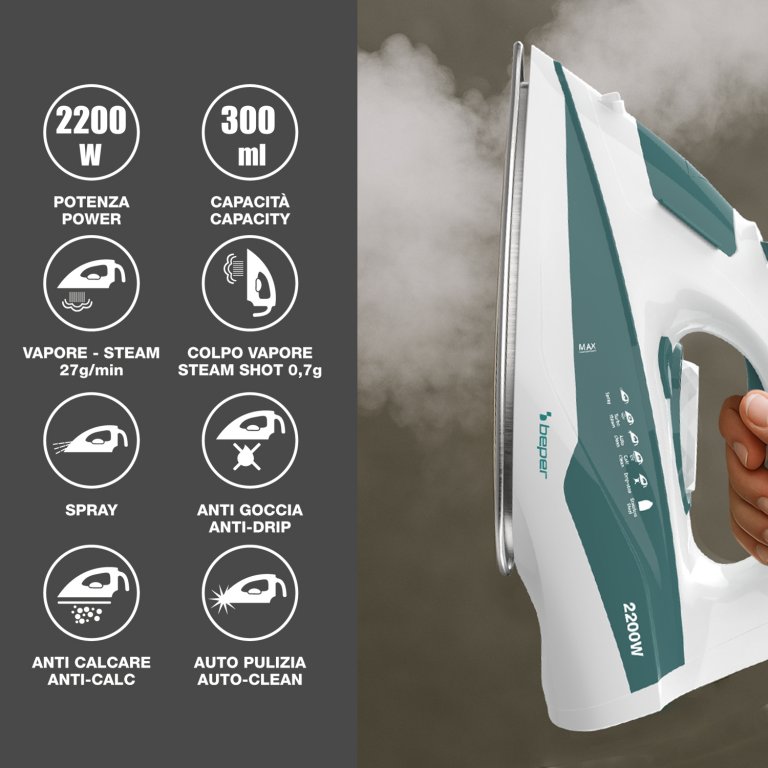 Jaudīgs, ātrs un precīzs: BEPER SteamPro 300 ir gludeklis, kas paredzēts, lai gludināšanu padarītu vienkāršāku un ātrāku pat uz vissarežģītākajiem audumiem.