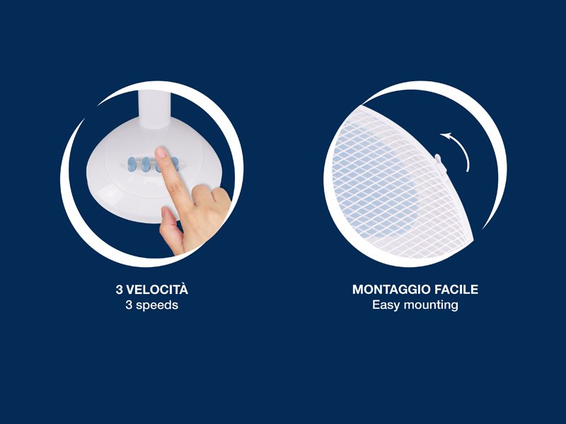 3 izvēles ātrumi, regulējams vertikālais slīpums un automātiska svārstību funkcija.