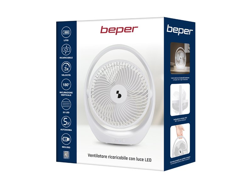 Uzlādējams pārnēsājams ventilators ar LED apgaismojumu