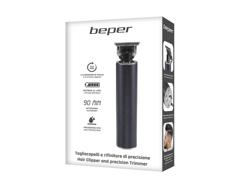 Uzlādējams precīzs matu griezējs un trimmeris tiem, kas mīl stilu, pievēršot uzmanību detaļām. Ilga mūža litija akumulators, ko var uzlādēt, izmantojot praktisku USB kabeli. IPX5 ūdens aizsardzības pakāpe. Komplektā ar 4 regulatora ķemmēm (1,5 / 3/6/9 mm) un asmeņu pārsegiem.
