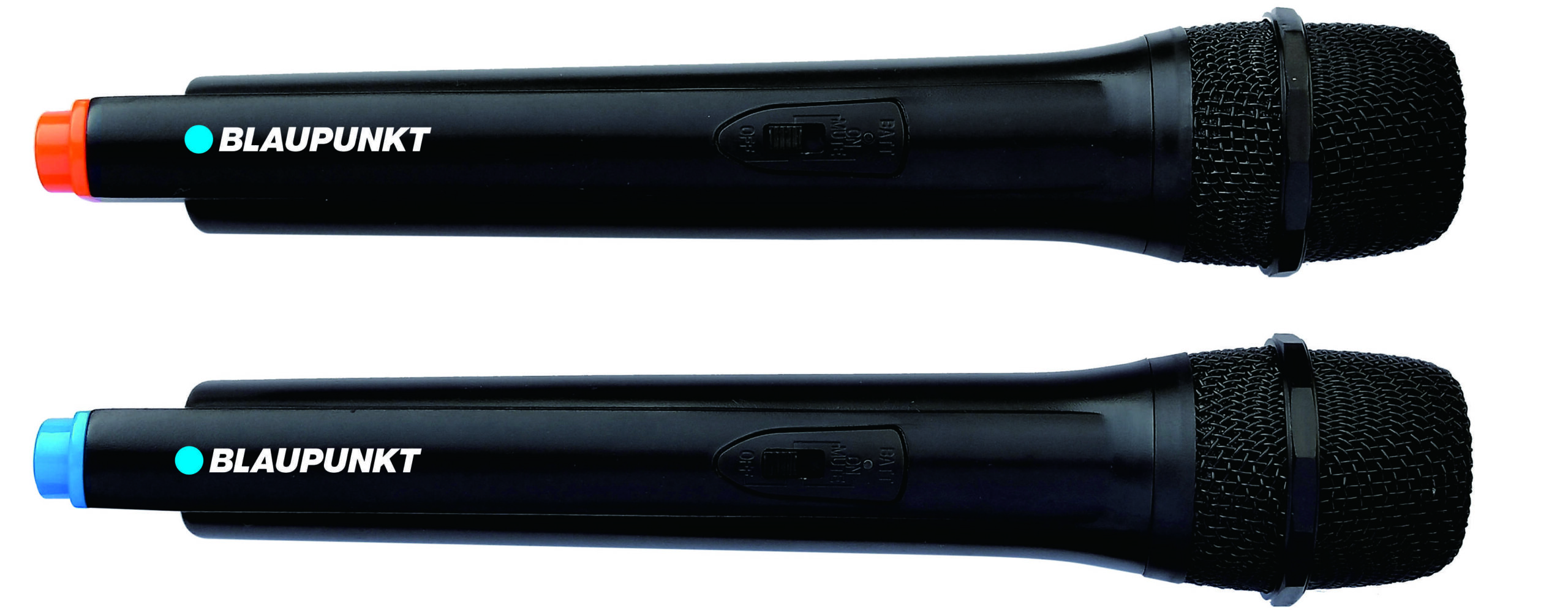 Iekļauta karaoke funkcija ar diviem bezvadu mikrofoniem