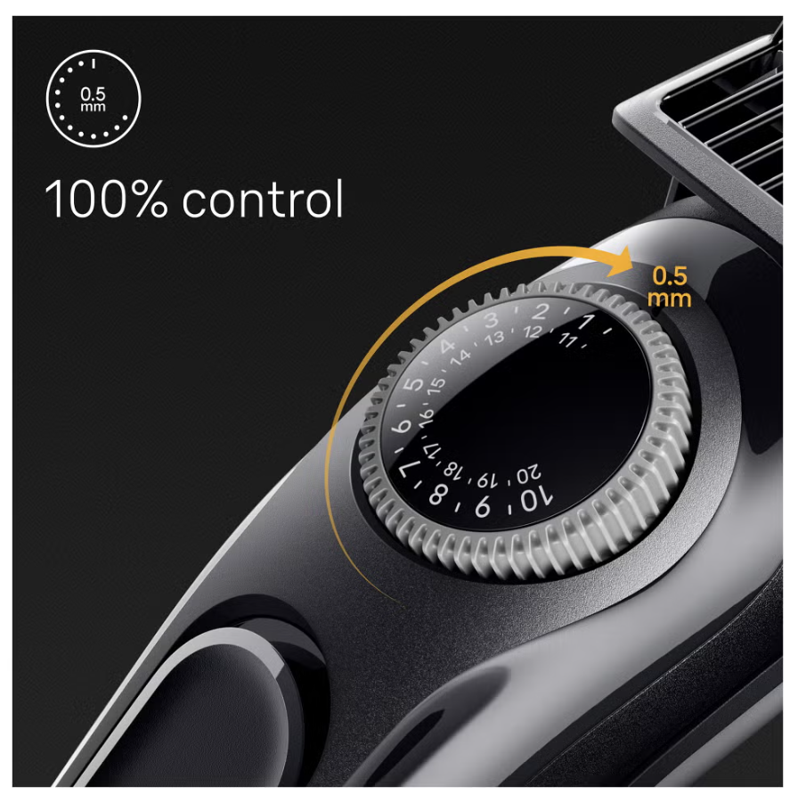 | Citas funkcijas | Precise Styling at home: easy precision and 100% control with Braun's Beard Trimmer 3; Great finishes in every stroke: the ultra sharp blade trims evenly any beard; 100% control at your fingertips: choose from 40 length settings in 0.5 mm precise steps with the precision wheel; Trim long & short, confidently at home: Styling tools help you achieve even trims and precise details for great finishes |