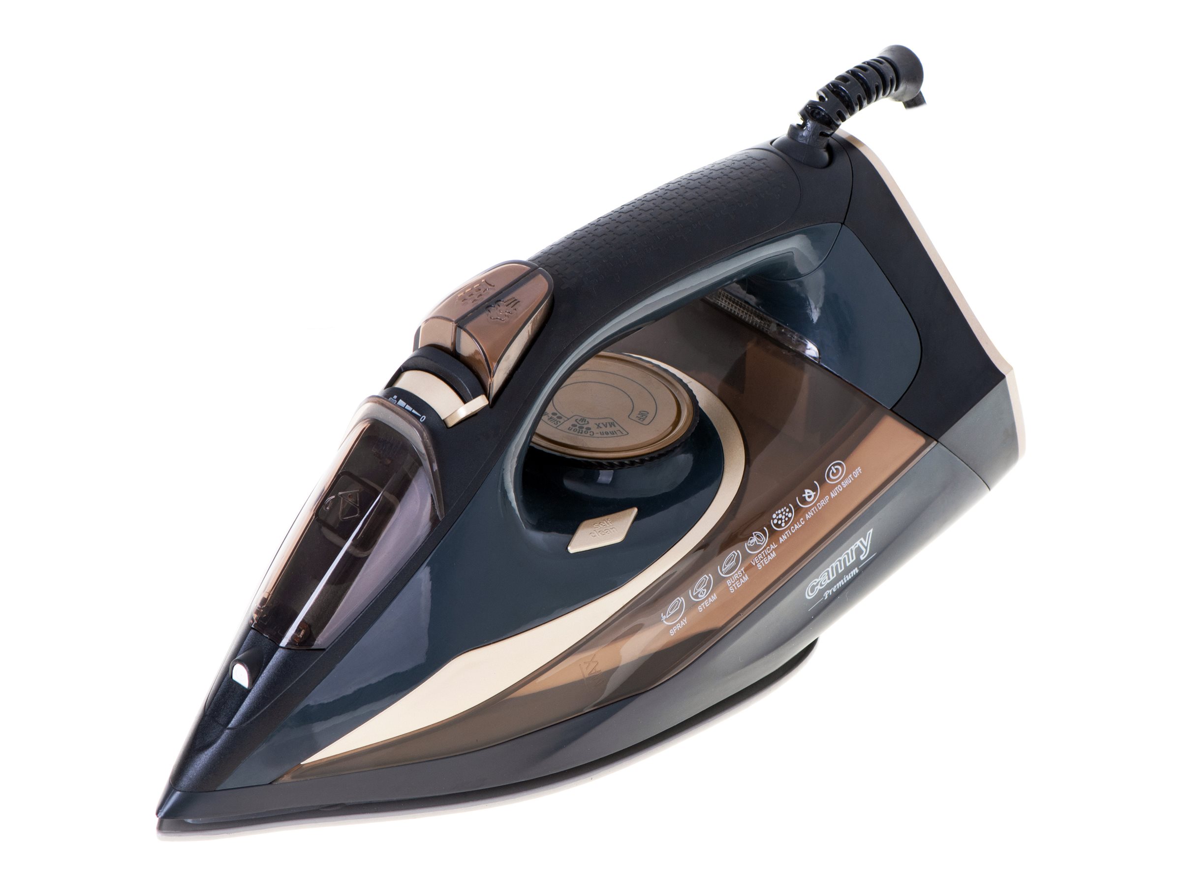 Camry | Steam Iron | CR 5036 | Steam Iron | 3400 W | Water tank capacity 360 ml | Continuous steam 50 g/min | Black/Gold