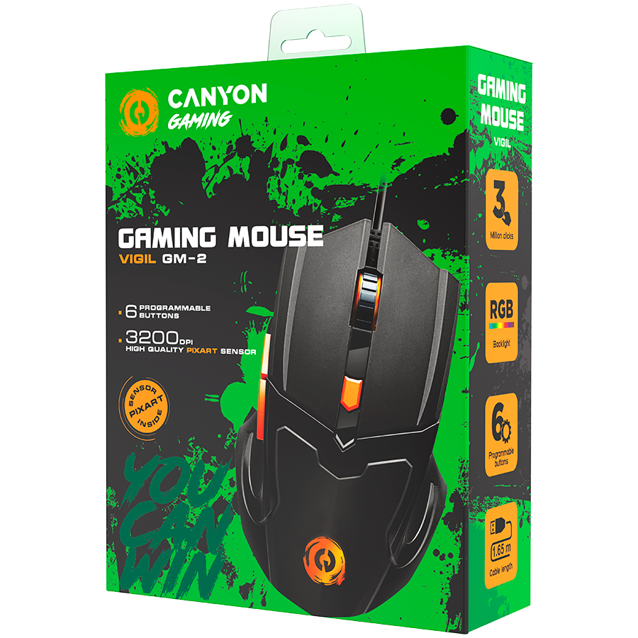 - Komerciālais nosaukums: CANYON mouse Vigil GM-2 RGB 6buttons Wired Black