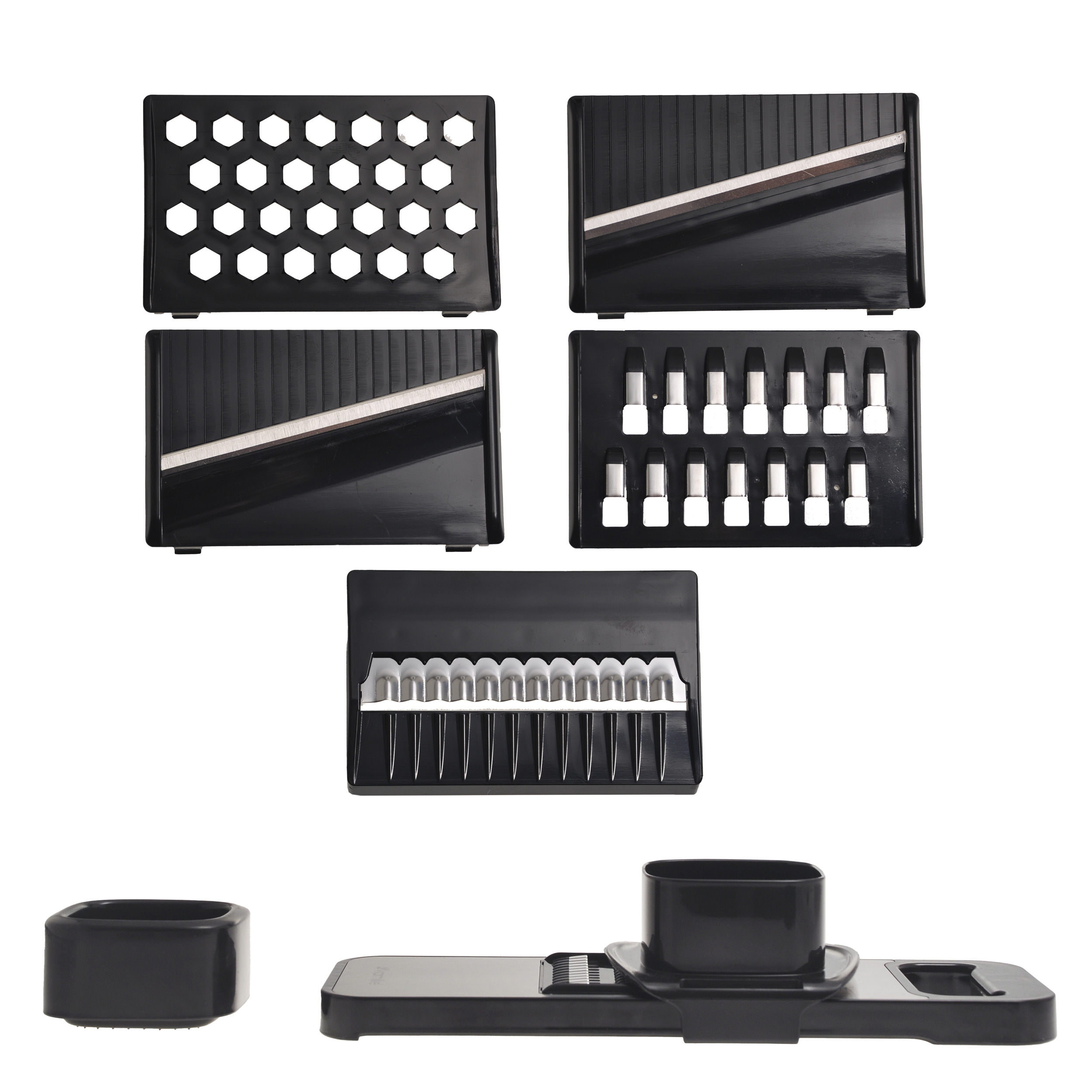 Daudzfunkcionāla dārzeņu rīve, 3005, Kamille. Izgatavots no izturīgas plastmasas un nerūsējošā tērauda; asmeņi ir no nerūsējošā tērauda. Komplektā ietilpst seši maināmi asmeņi un ērts turētājs produktu satveršanai. Lieliski sagriež un sarīvē dārzeņus un augļus gardiem salātiem vai citiem iecienītiem ēdieniem.
