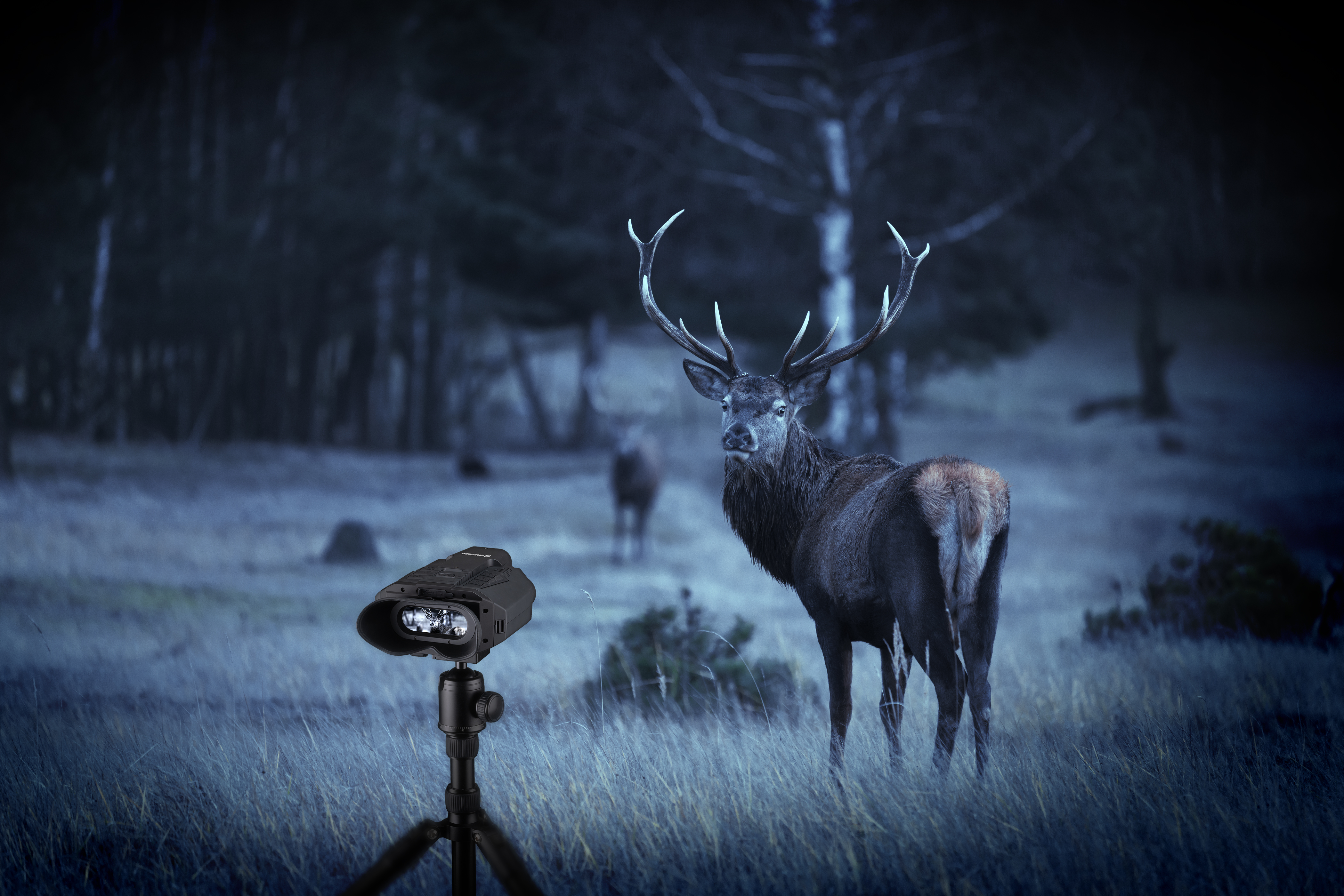 The Explorer 200RF night vision device is also suitable for daytime use. Thanks to the comfortable binocular eyepiece, you can observe from a distance of up to 200 metres at night and up to 500 metres during the day. The rangefinder functions at distances of up to 200 metres.