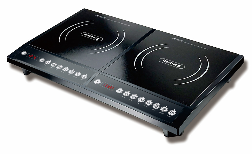 Dubultā indukcijas plīts virsma. 4 ciparu LED displejs un vadība ar pogām. Augstas kvalitātes indukcijas spole. 8 regulējami jaudas/temperatūras līmeņi. Aizsardzība pret pārkaršanu. Augsta/zema sprieguma aizsardzība. Nepulēta kristāla plāksne 280-280 mm * 2. Automātiska izslēgšanās, ja nav pievienots gatavošanas katls vai ja katls ir tukšs. Jauda: 220-240 V, 50/60 Hz, 2000 W + 2000 W.