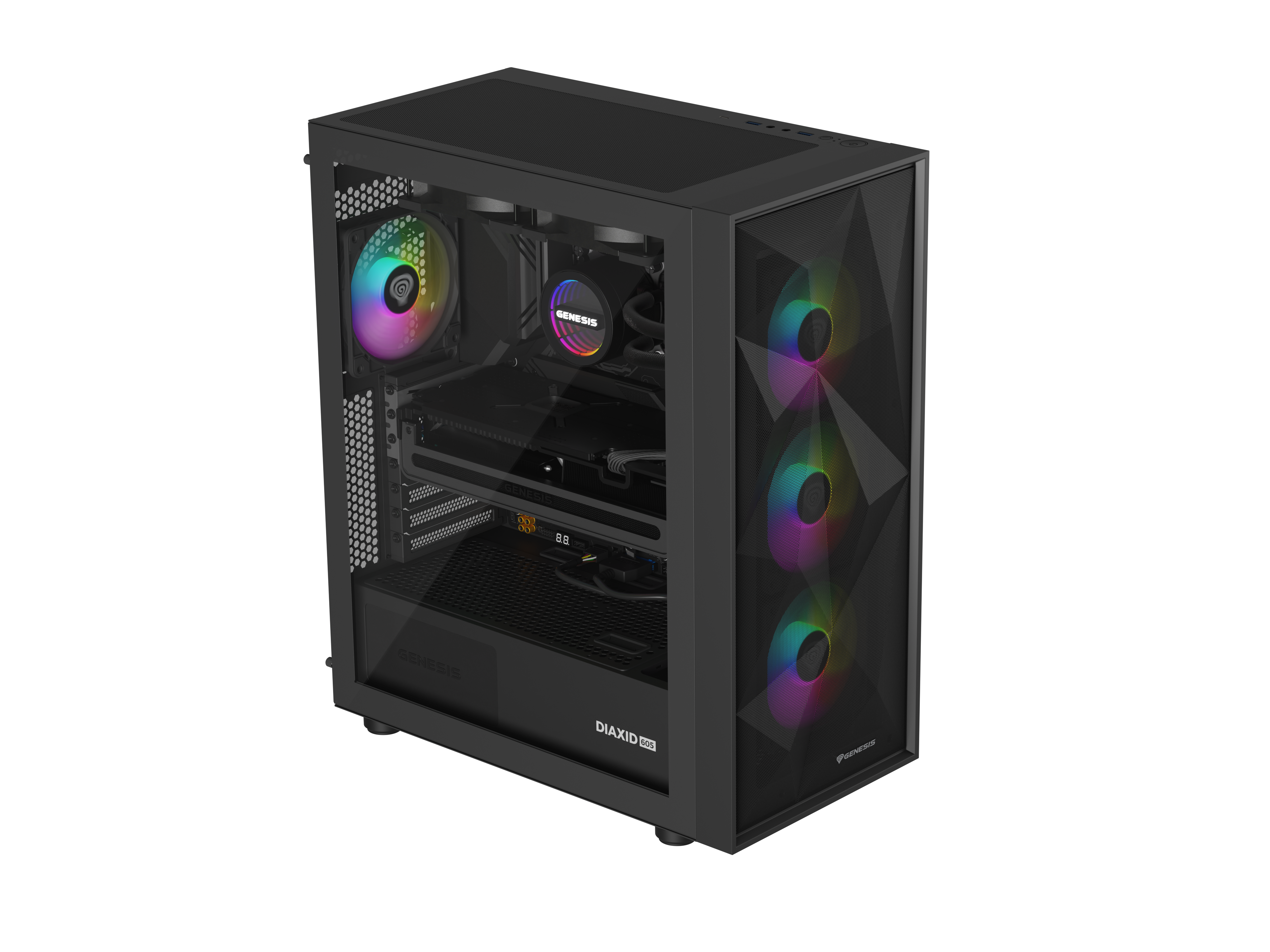 Genesis Gaming PC Case | Diaxid 605 ARGB | Black | Midi Tower | Power supply included No