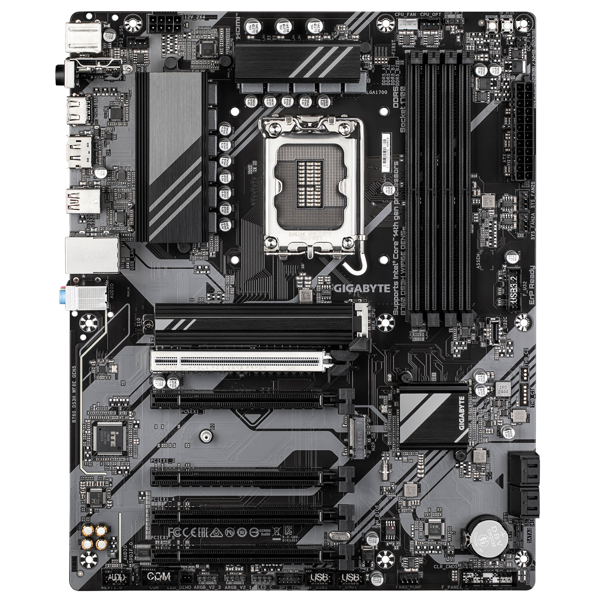 Gigabyte B760 DS3H WF6E GEN5 | Processor family Intel | Processor socket LGA1700 | DDR5 | Supported hard disk drive interfaces M.2, SATA | Number of SATA connectors 4