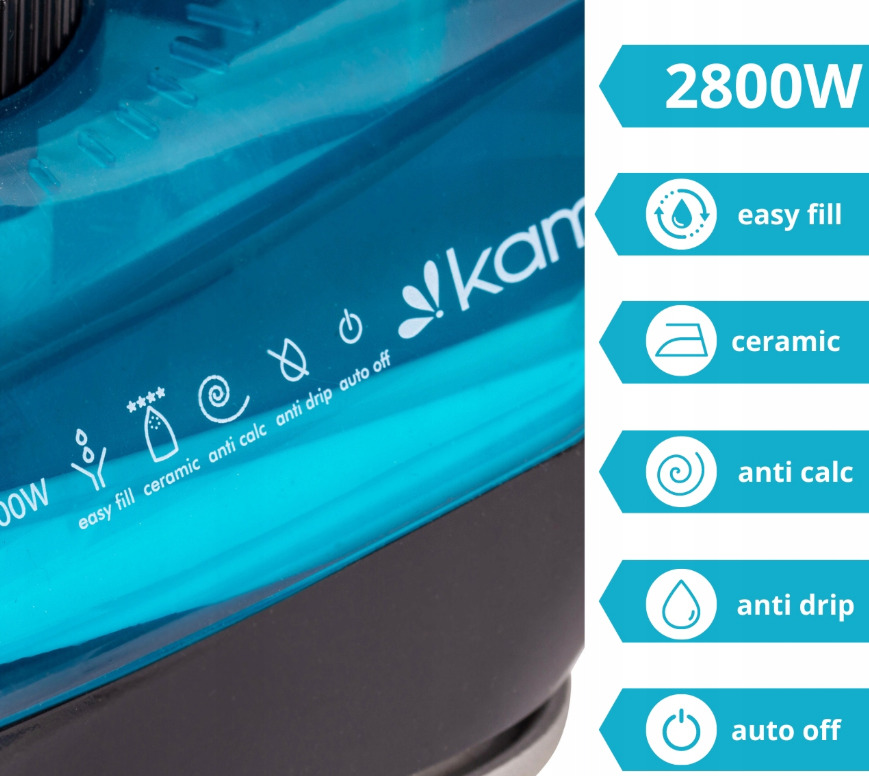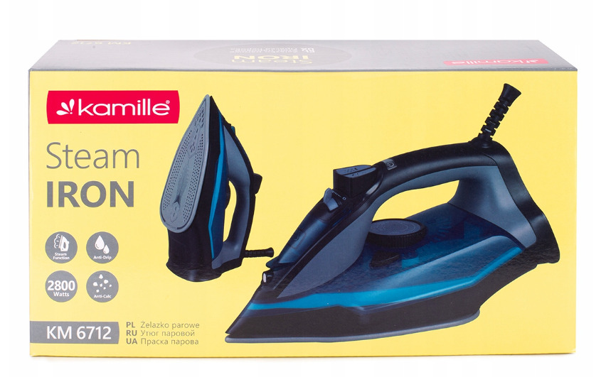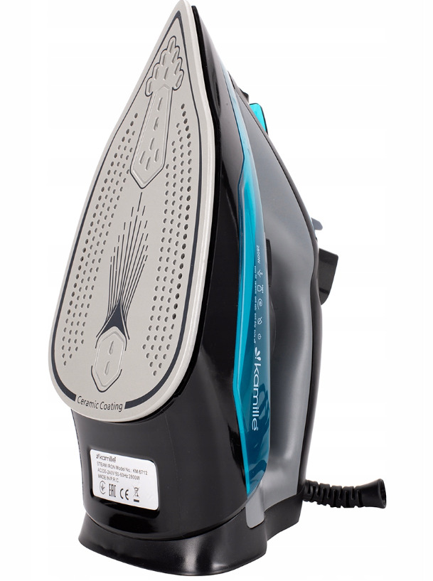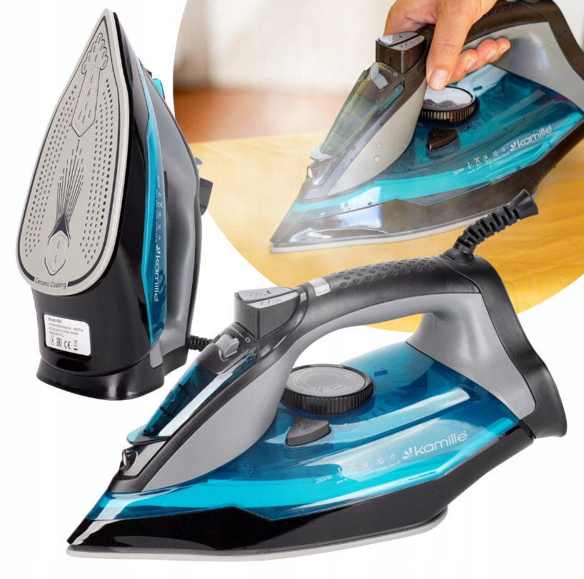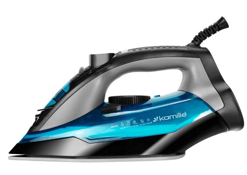 Gludeklis, 2800W, zils, 6712, KAMILLE. Maksimālā jauda: 2800W. Keramikas zole, pretpilēšanas funkcija, automātiskā izslēgšanās funkcija, pretkaļķa sistēma, vertikālā tvaicēšana. Strāvas vada garums: 190 cm.