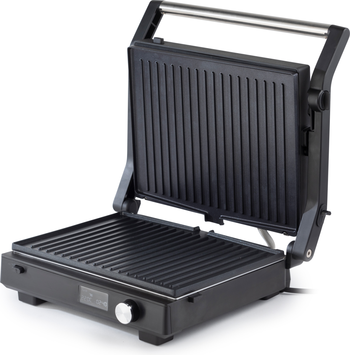 | Citas funkcijas | 180° Open Grilling; Independent cook plate control; One knob control and elegant LED display; Grease drainage |