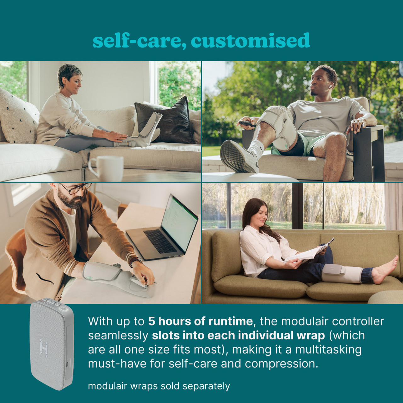 4 kompresijas masāžas programmas katram modulārajam aptinumam