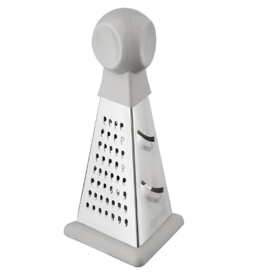 Kinghoff 3-pušu rīve, augstums 15.8 cm, KH 1987. Izgatavota no augstas kvalitātes nerūsējošā tērauda. 3-pušu dizains nodrošina dažādas rīvēšanas iespējas. Izturīgi un precīzi asmeņi, ideāli piemēroti dārzeņiem, augļiem, sieram vai šokolādei. Ergonomisks rokturis ērtai lietošanai. Neslīdoša silikona pamatne nodrošina pilnīgu stabilitāti darba laikā. Augstums: 15.8 cm. Pamatne: 8.3 × 7.5 cm.