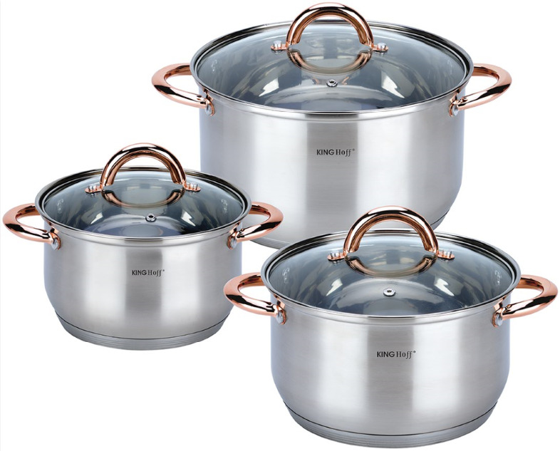 KINGHoff rozā zelta krāsas katlu komplekts, 6 daļas, Ø18, Ø20, Ø24, KH 1762