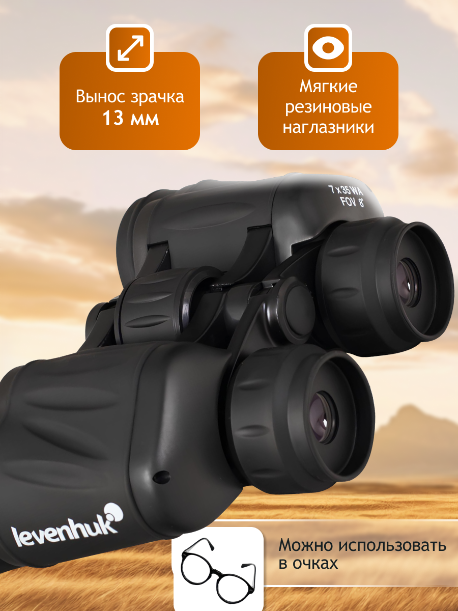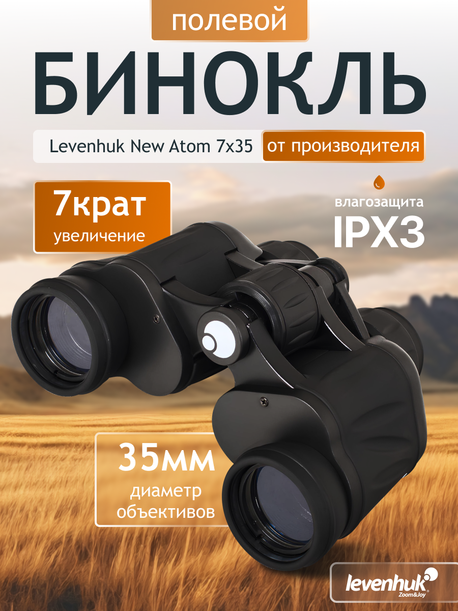 Levenhuk New Atom 7x35 binokļi ir aprīkoti ar 35 mm objektīva lēcām un 7x palielinājumu ar Porro prizmām klasiskā dizainā. Tie ir ideāli medībām, makšķerēšanai, pārgājieniem vai sporta pasākumiem. BK-7 stikls un pilnīgi daudzslāņainā optika nodrošina skaidras, augsta kontrasta attēlus ar bagātīgiem krāsu toņiem plašā gaismas apstākļu diapazonā.