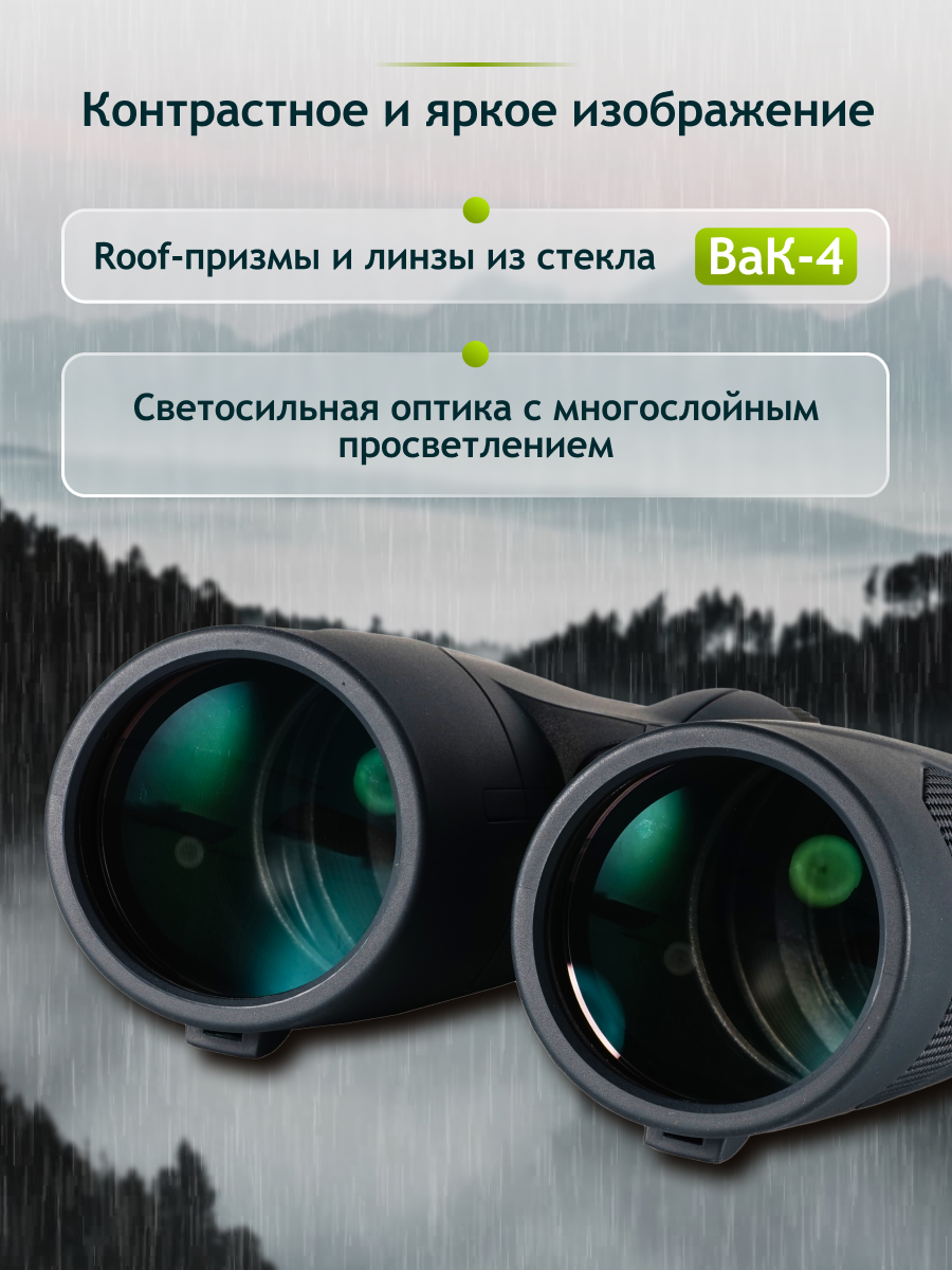 - Augstas veiktspējas optika: 50 mm objektīvi, 10x palielinājums un daudzslāņu optika