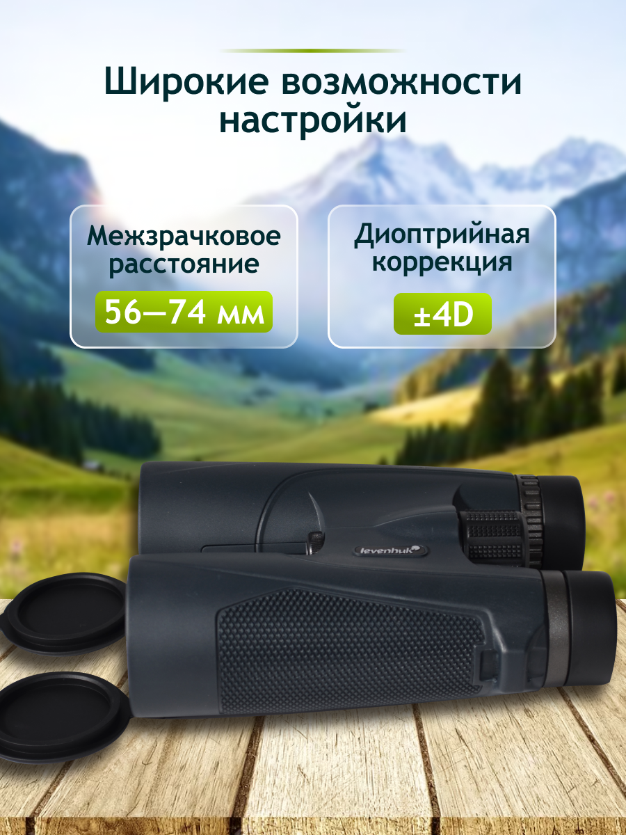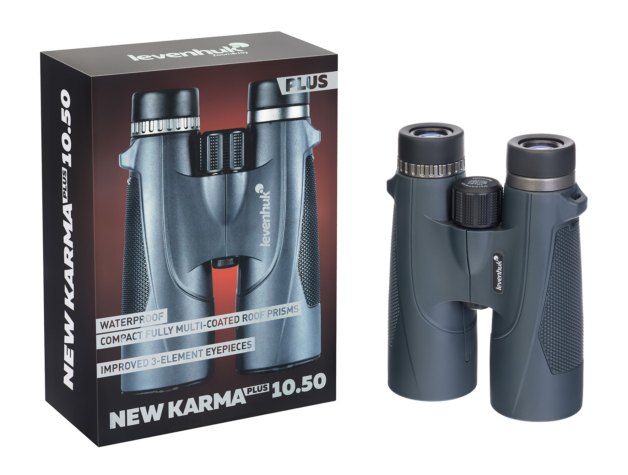 Levenhuk New Karma PLUS 10x50 binokļi lieliski darbojas arī zem apgaismojuma apstākļiem. Dažādas pārklātās optikas nodrošina gaismu, skaidrus un izkropļojumus bezmaksas attēlus, pat krēslaino stundu laikā. Binokļi viegli pielāgojas individuālajām vajadzībām. Regulējamā interpupillāra attālums (56–74 mm) un ±4 dioptiju korekcija padara tos ideālus ikvienam, ieskaitot tos, kuri lieto brilles. Domāti izstrādātie pagriežamie acu apgleznojumi, kas izgatavoti no mīkstas un izturīgas nitrilakrila gumijas, nodrošina komfortablu izmēru. Izņemot spiedienpunktus ap acīm, tie ļauj ilgstoši novērot bez noguruma.