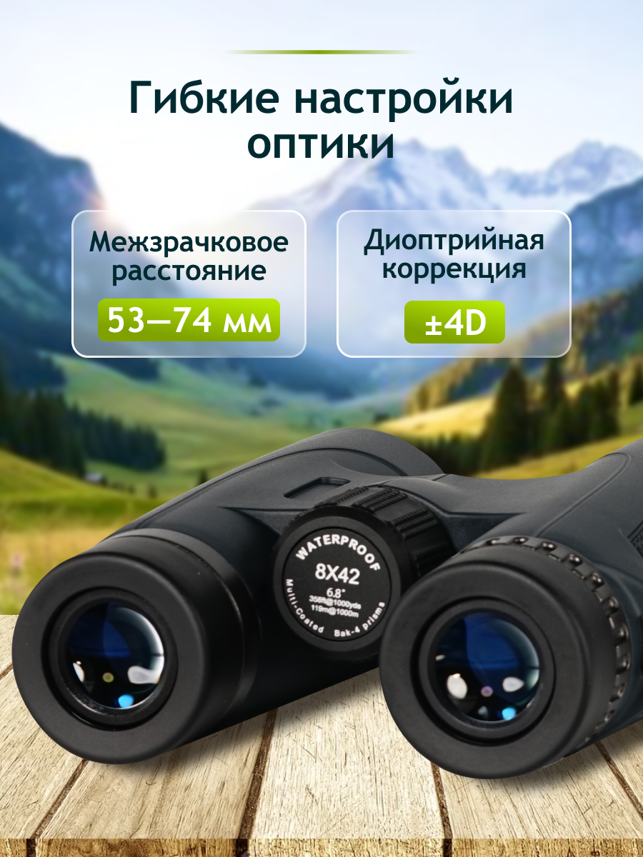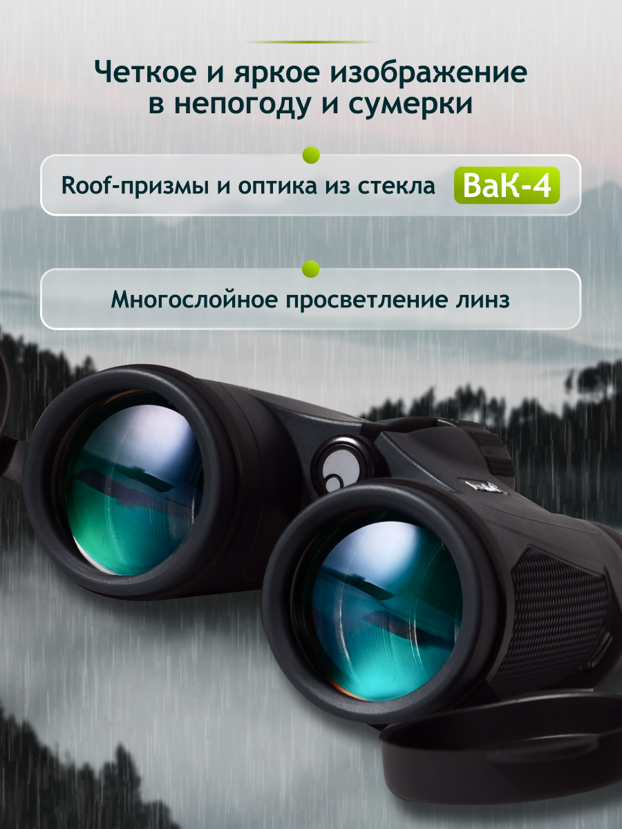Laika apstākļu noturība ir galvenā Levenhuk New Karma PLUS 8x42 modela stiprā puse. Tā IP67 novērtētā, noslēgtā korpuss sniedz pilnīgu aizsardzību pret putekļiem un ūdeni. Šie binokļi iztur sniegu, lietu un smilšu vēju, pat nelaimes gadījumā iegremdējot līdz pat vienam metram dziļumā bez bojājumiem. Azota pildījums iekšpusē novērš objektīva tumšumu, nodrošinot skaidras skatus jebkurā laikapstākļu apstākļos. Gumijas apvalks ārēji nodrošina drošu, nešļākamību pat ar mitrām rokām. Pieejams arī siksna drošībai.
