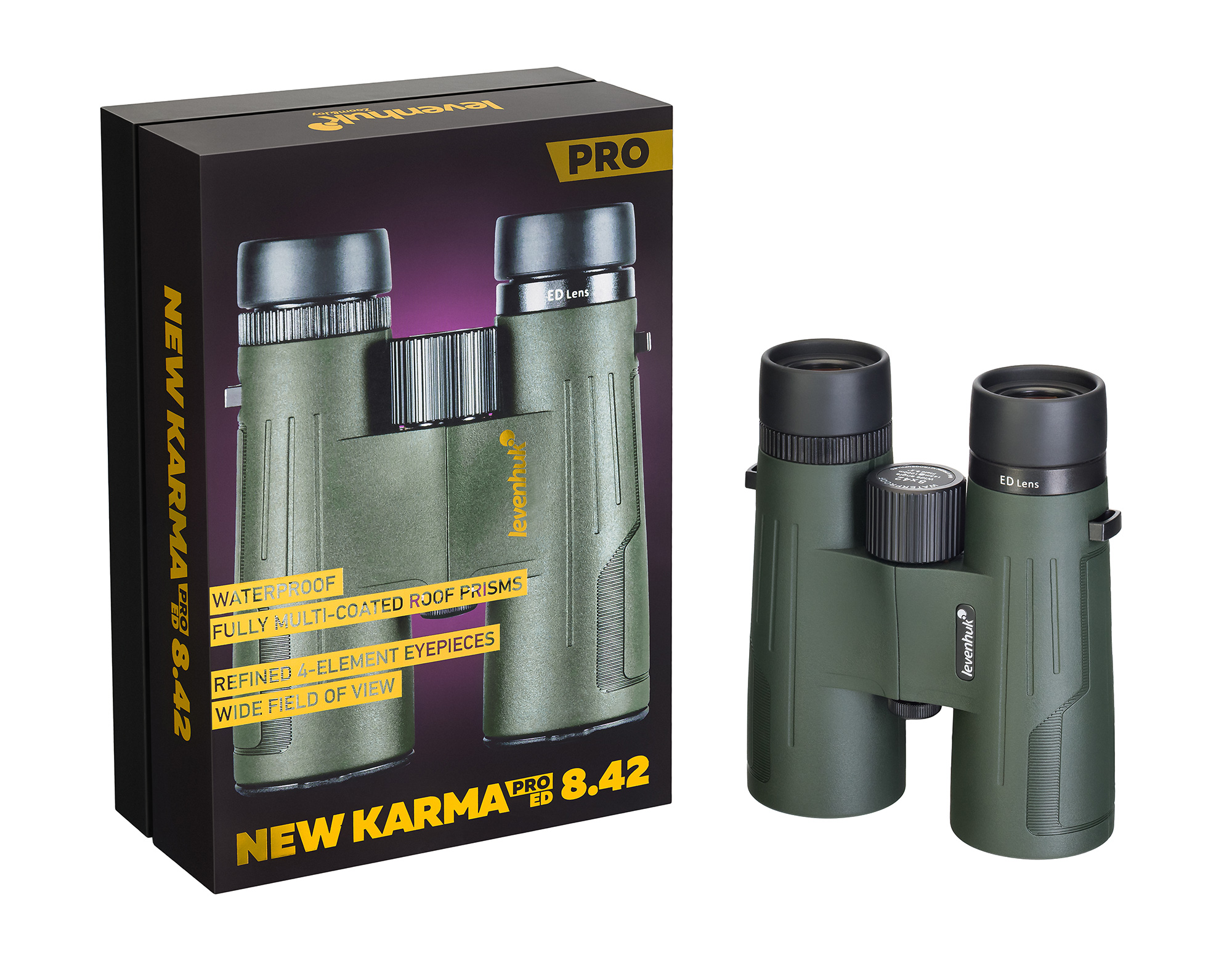 Levenhuk New Karma PRO ED 8x42 binokļi nodrošina uzticamu veiktspēju dienas un krēsla novērojumiem. To izturīgais dizains aizsargā pret sniegu, lietu, miglu, dubļiem un putekļiem āra vides apstākļos. Šie binokļi spēj izturēt laika apstākļus pateicoties tam, ka tiem ir IP67 sertificēta ūdensnecaurlaidīga apvalka. Tos pat padara ūdensizturīgus (līdz 1 metra dziļumam). To slāpekļa pildījums novērš lēcu apgrūtināšanos ar tvaiku pēkšņas temperatūras vai mitruma izmaiņās. Levenhuk New Karma PRO ED 8x42 binokļi ir ideāli piemēroti dabas novērotājiem, treku entuziastiem, drošības darbiniekiem patrulēšanas laikā un ārkārtas situāciju risinātājiem.