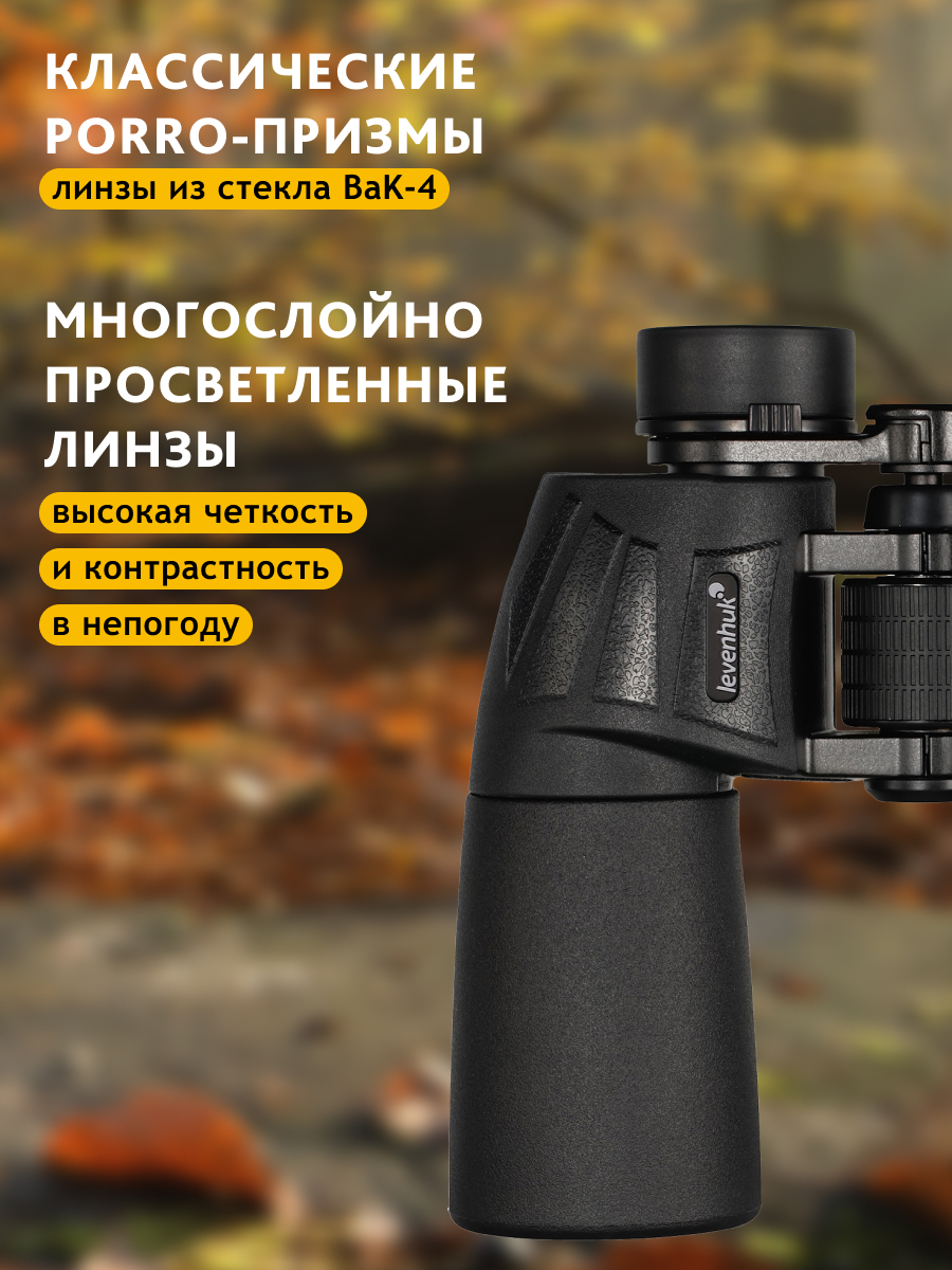 Levenhuk New Sherman BASE 12x50 binokļiem ir neatņemams instruments dabas entuziastiem, medniekiem un tiem, kas nodarbojas ar izlūkošanu, meklēšanu un glābšanu vai drošību. Ierīces korpusu veido silumīns, kas ir izturīgs alumīnija-siliciona sakausējums, kas nav pakļauts korozijai vai mehāniskā nodiluma. Binokļi ir IP67 klasē, nodrošinot uzticamu aizsardzību pret putekļiem un mitrumu.