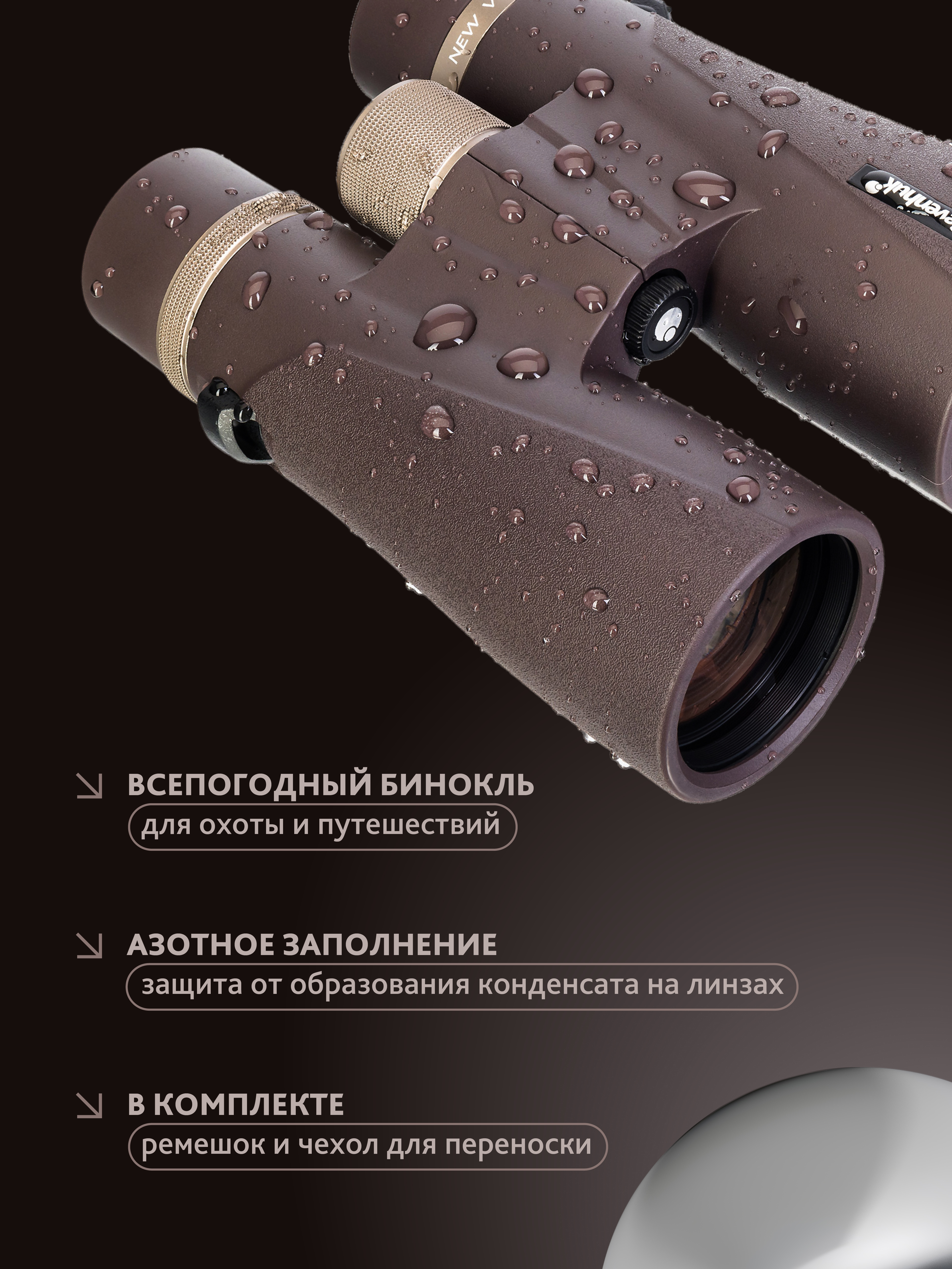 Binoklis Levenhuk New Vegas ED 10x56 ir izstrādāts, lai izturētu daba un laika apstākļus, kas visbiežāk negatīvi ietekmē optiskos instrumentus darbā laukā. The Binoklis aizsargāts pret lietu, sniegu, miglu un putekļiem, izmantojot IP67 klasē aizsargātu ūdensizturīgu korpusu. Turklāt tie ir piepildīti ar slāpekli, lai novērstu objektīvu apmiglojumu pēkšņu temperatūras izmaiņu laikā. Slāpeklis tiek bieži izmantots optikā, lai palēninātu korozijas un oksidācijas procesus, vienlaikus novēršot sēnīšu un baktēriju augšanu. Tas nodrošina, ka binoklim Levenhuk New Vegas ED 10x56 tiek saglabāta tā darbība un funkcionālums laika gaitā. Binokļa korpusu izgatavojis magnija-alumīnija sakausējums, kas ir pazīstams ar savu trieciensizturību un ilgmūžību.