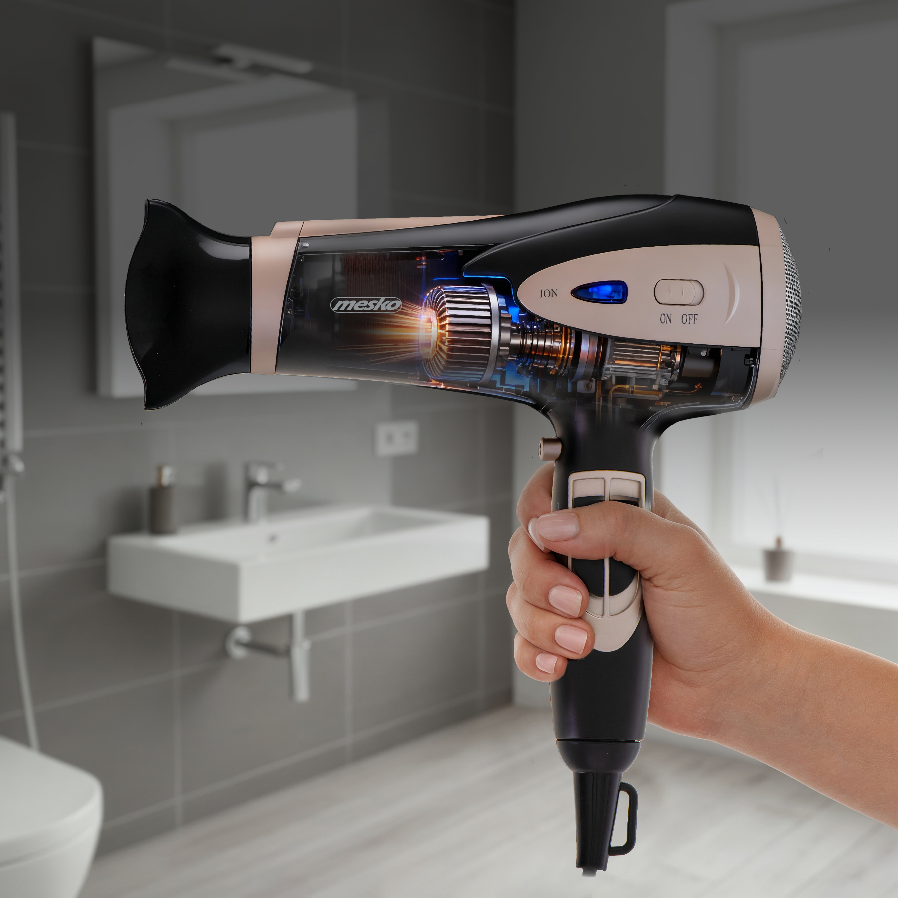 Fēns Mesko Hair Dryer | MS 2287 | 2200 W | Number of temperature settings 3 | Diffuser nozzle | Black/Champagne
