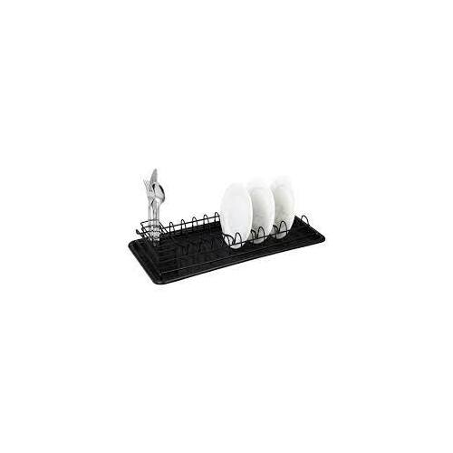 Metāla trauku žāvētājs no melnas stieples, daļēji pārklāts ar pretslīdes silikonu, 50,5 x 24 x 9,5 cm