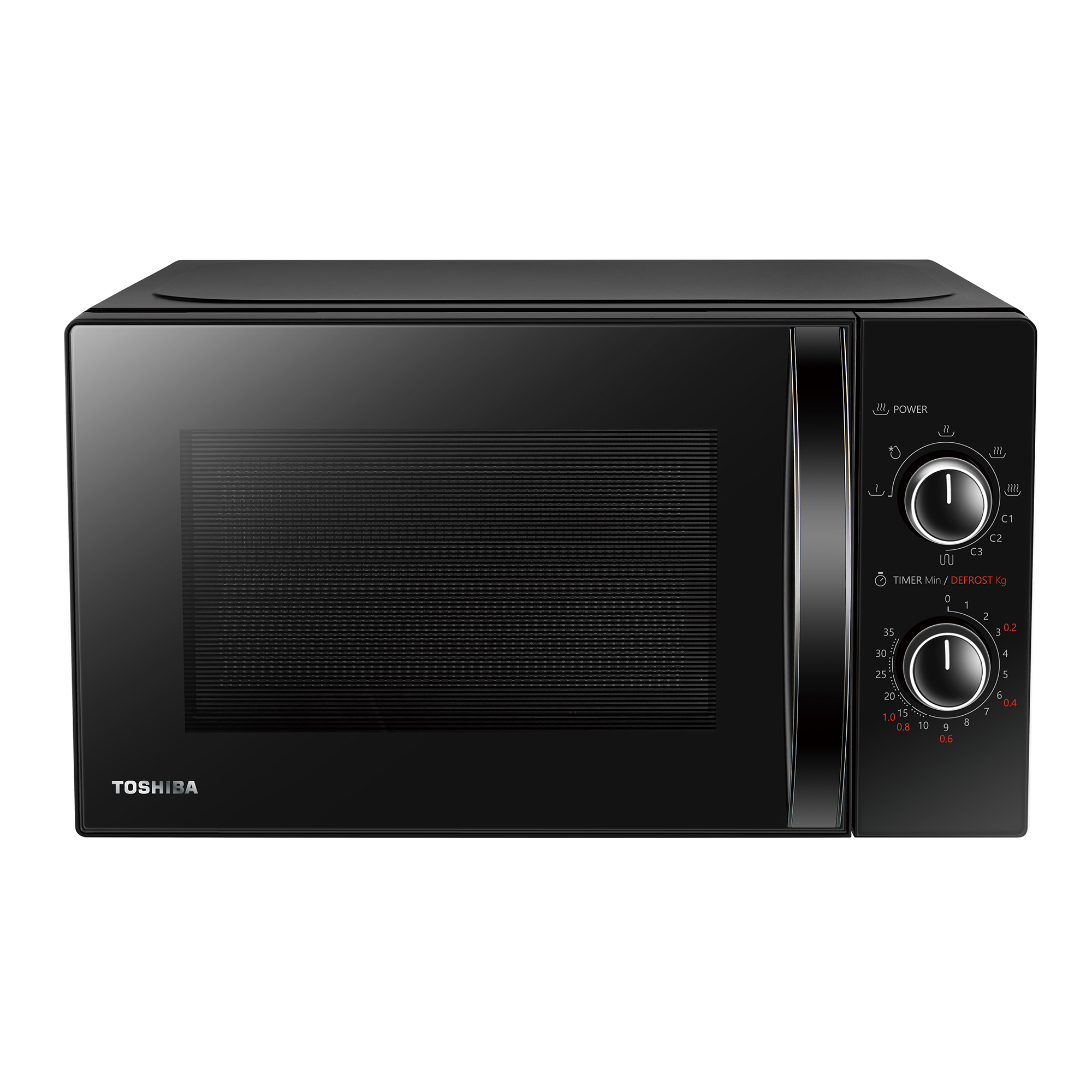 Mikroviļņu krāsns Toshiba MW MG20PBK, 20 L, ar mehānisko vadību, 800 W jaudu, 6 jaudas līmeņiem, grila funkciju un LED apgaismojumu, melnā krāsā. Tā ir izstrādāta, lai saīsinātu gatavošanas laiku, nezaudējot veiktspēju: 450 g gaļas tā atkausē 6 minūtēs un 30 sekundēs, bet 450 g ēdiena uzsilda 4 minūtēs un 30 sekundēs. Ierīcei ir elegants dizains, atkausēšanas programma, klasisks izliects rokturis, intuitīvs vadības panelis, izturīgas eņģes, neslīdošas kājiņas un ūdensizturīga, viegli tīrāma iekšējā siena. Izmēri: 44 × 33,4 × 25,9 cm.