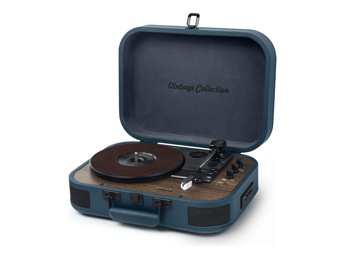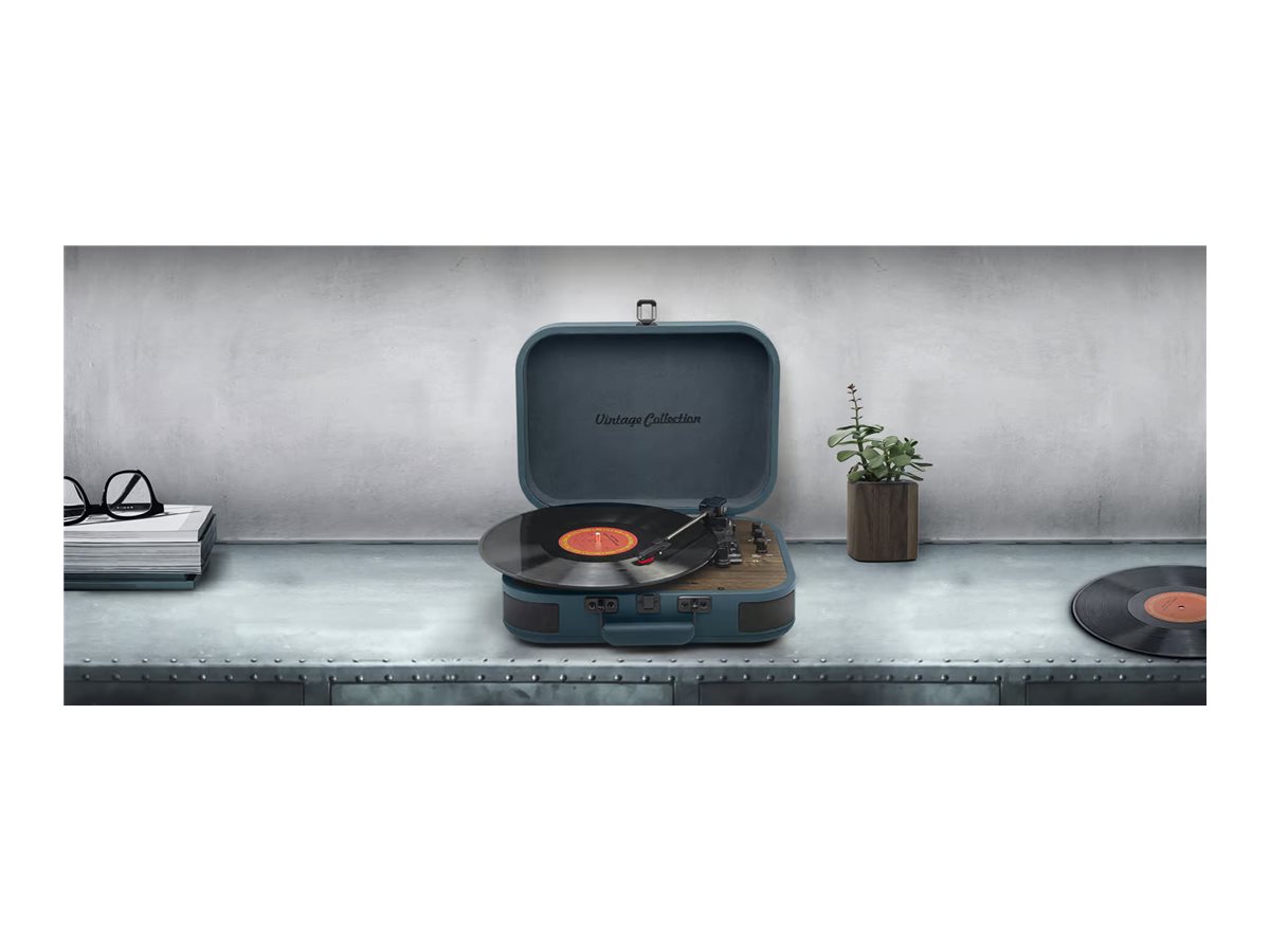 | Citas funkcijas | 3 speeds stereo turntable 33/45/78 RPM; Auto-stop ON/OFF switch; 2 built-in speakers |