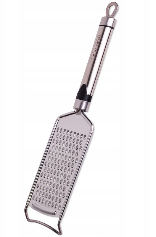 Nerūsējošā tērauda rīve (sīkas acis), 16,5×5,5 cm, 5059, KAMILLE. Izgatavota no augstākās kvalitātes nerūsējošā tērauda. Izmēri: 16,5×5,5 cm. Vienmērīgi izvietotās acis ļauj rīvēt gan cietus, gan mīkstus produktus, piemēram, dārzeņus, augļus vai sieru. Viegla un ērta lietošanā. Ieteicama mazgāšana ar rokām.