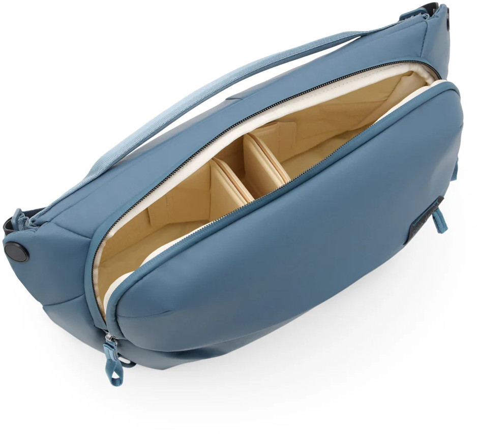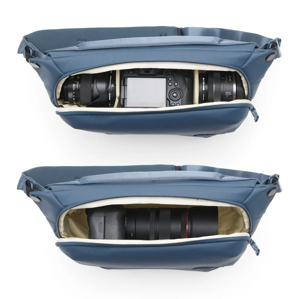 Inside, the Everyday Sling boasts a well-organized layout with customizable padded dividers. These dividers can be adjusted to fit a variety of gear, from camera equipment to personal items. The spacious main compartment allows for efficient organization and quick access to your belongings.