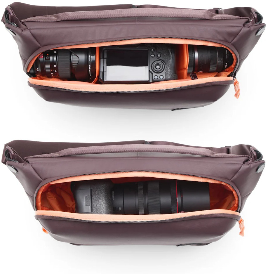 Inside, the Everyday Sling boasts a well-organized layout with customizable padded dividers. These dividers can be adjusted to fit a variety of gear, from camera equipment to personal items. The spacious main compartment allows for efficient organization and quick access to your belongings.