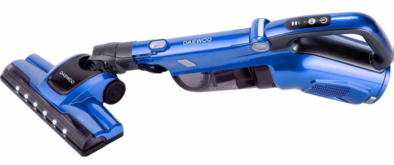Putekļsūcējs, 0.6L, 130W, RSH 310GB 1, Daewoo. Jauda 130W. Putekļu tvertne 0.6L, viegli izņemama un iztukšojama. Li-ion akumulators 22.2V. Trokšņa līmenis 79dB. Izmēri 125x27x24 cm. Svars 2.95 kg.