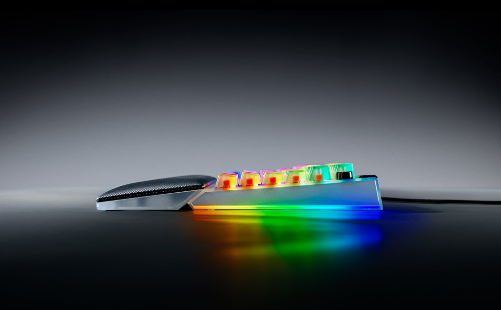 | Tehniskās īpašības | Magnetic Plush Leatherette Wrist Rest; Hybrid onboard storage – up to 5 profiles; Non-conductive tape-enhanced PCB |