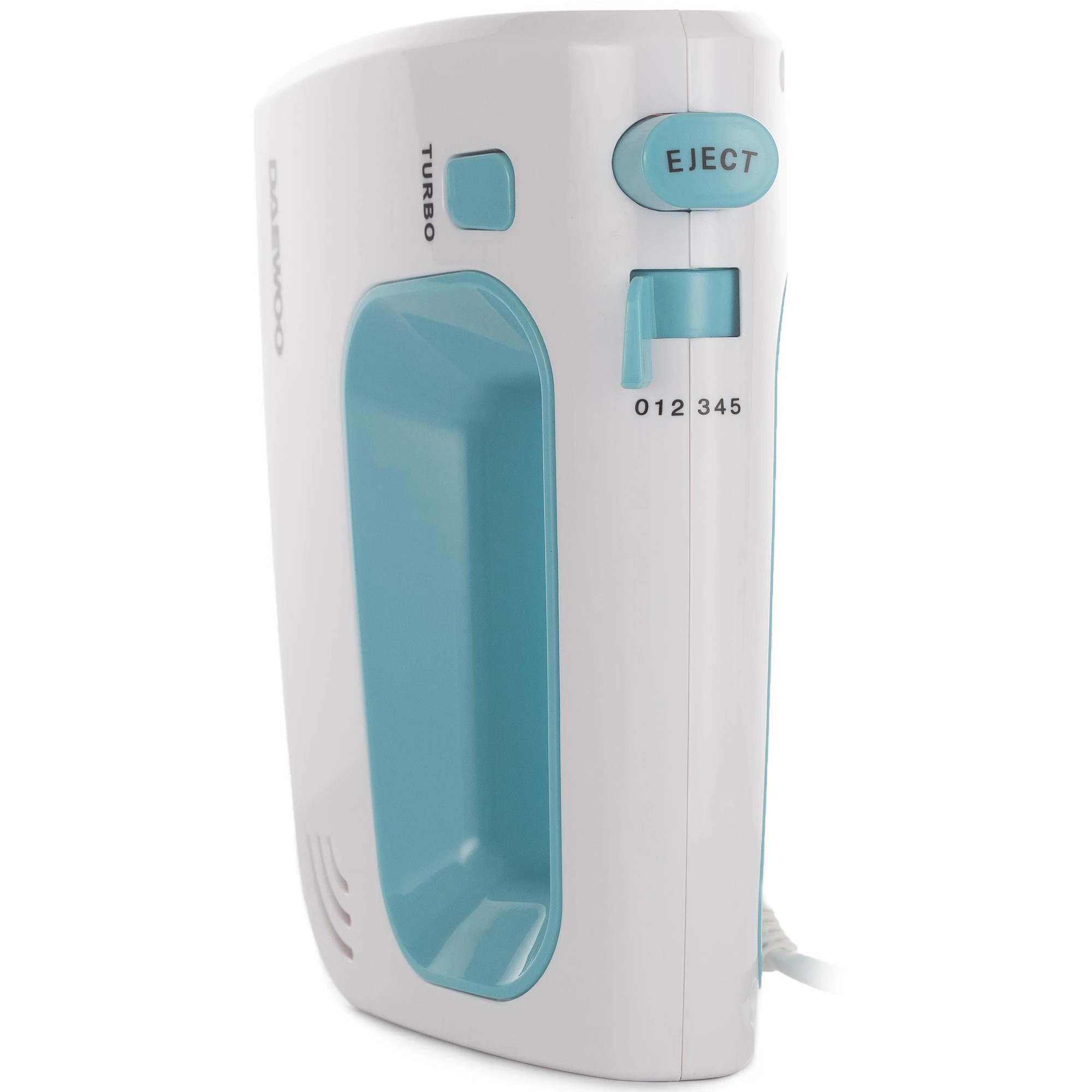 Rokas mikseris Daewoo DHM 122LB, 300 W, 5 ātrumi, Turbo funkcija, mīcīšanas piederums, maisīšanas putotāji, ABS korpuss, tirkīza krāsā. Maksimālā jauda ar vienas pogas pieskārienu; papildus 5 darbības ātrumiem TURBO funkcija nodrošina piekļuvi visaugstākajam rotācijas ātrumam, ļaujot sastāvdaļas sajaukt divreiz ātrāk. Mikserim ir ergonomisks, kompakts dizains, ar ērtu rokturi, viegli lietojams un uzglabājams. 300 W jauda nodrošina ātru maisījuma iegūšanu, kā arī perfektu sastāvdaļu homogenizāciju.