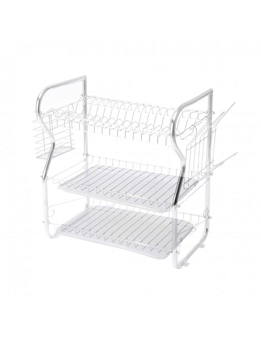 Rosberg 555R53000O trauku žāvētājs, 3 līmeņi, 43×24×45 cm, hroms. Hromētas caurules un hromēts stieples rāmis. Mūsdienīgs dizains. Daudzfunkcionāls šķīvju statīvs. Divas caurspīdīgas paplātes vieglai tīrīšanai. Piederumu turētājs. Turētājs 6 krūzēm. Stabils konstrukcijas izpildījums. Izmēri: augstums 45 cm, platums 43 cm, dziļums 24 cm. Krāsa: hroms.
